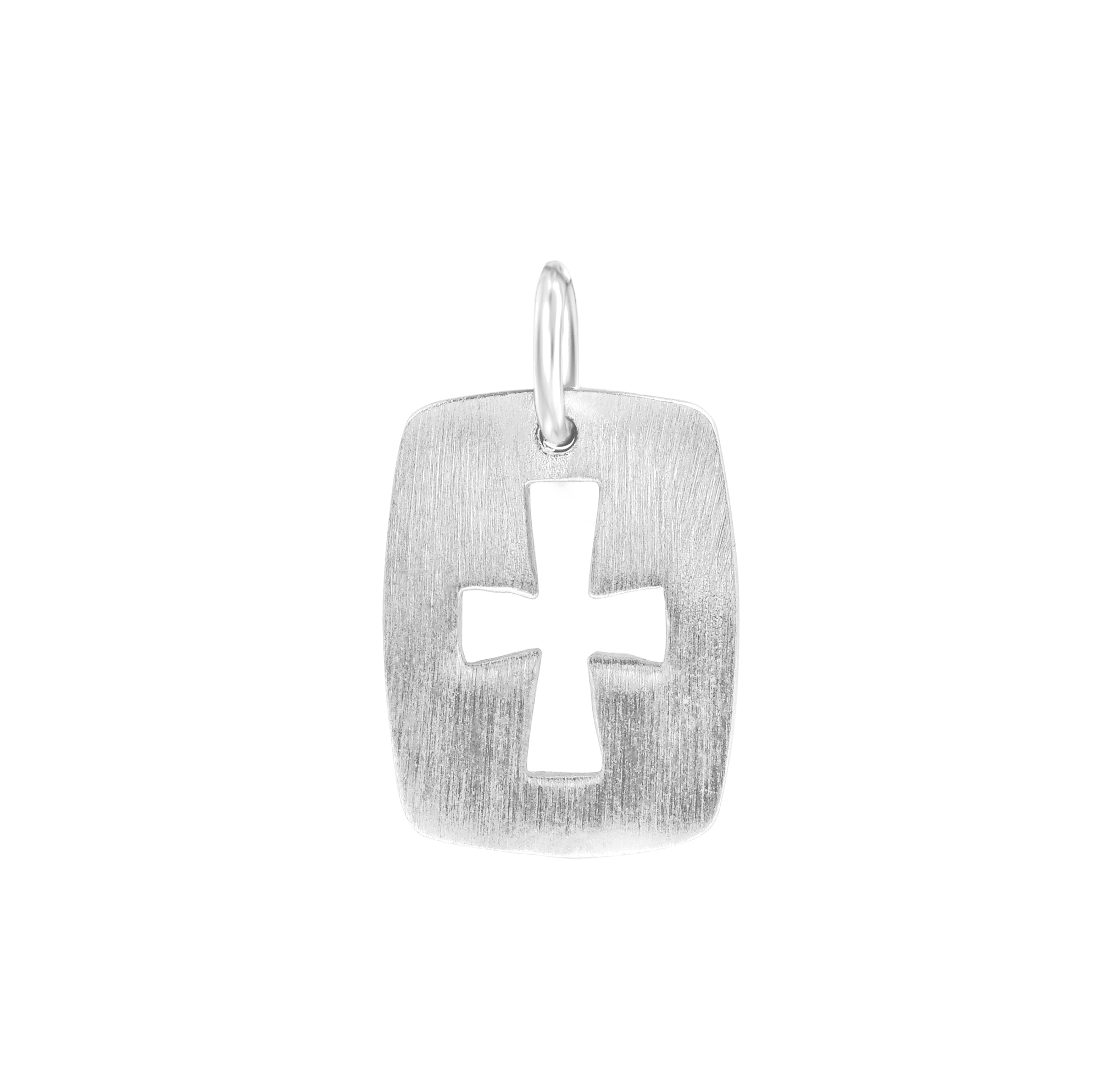 This precious and exclusively available Cross pendant has an elegant simplicity with a satin texture and graceful cut-out design. This item is produced in 100% genuine 925 Sterling Silver to ensure its lasting handcrafted quality and beauty.
