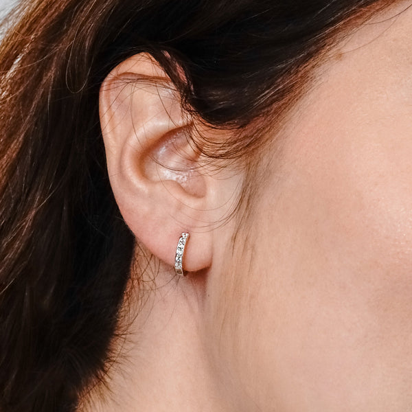 Huggie Earrings with CZ in Sterling Silver
