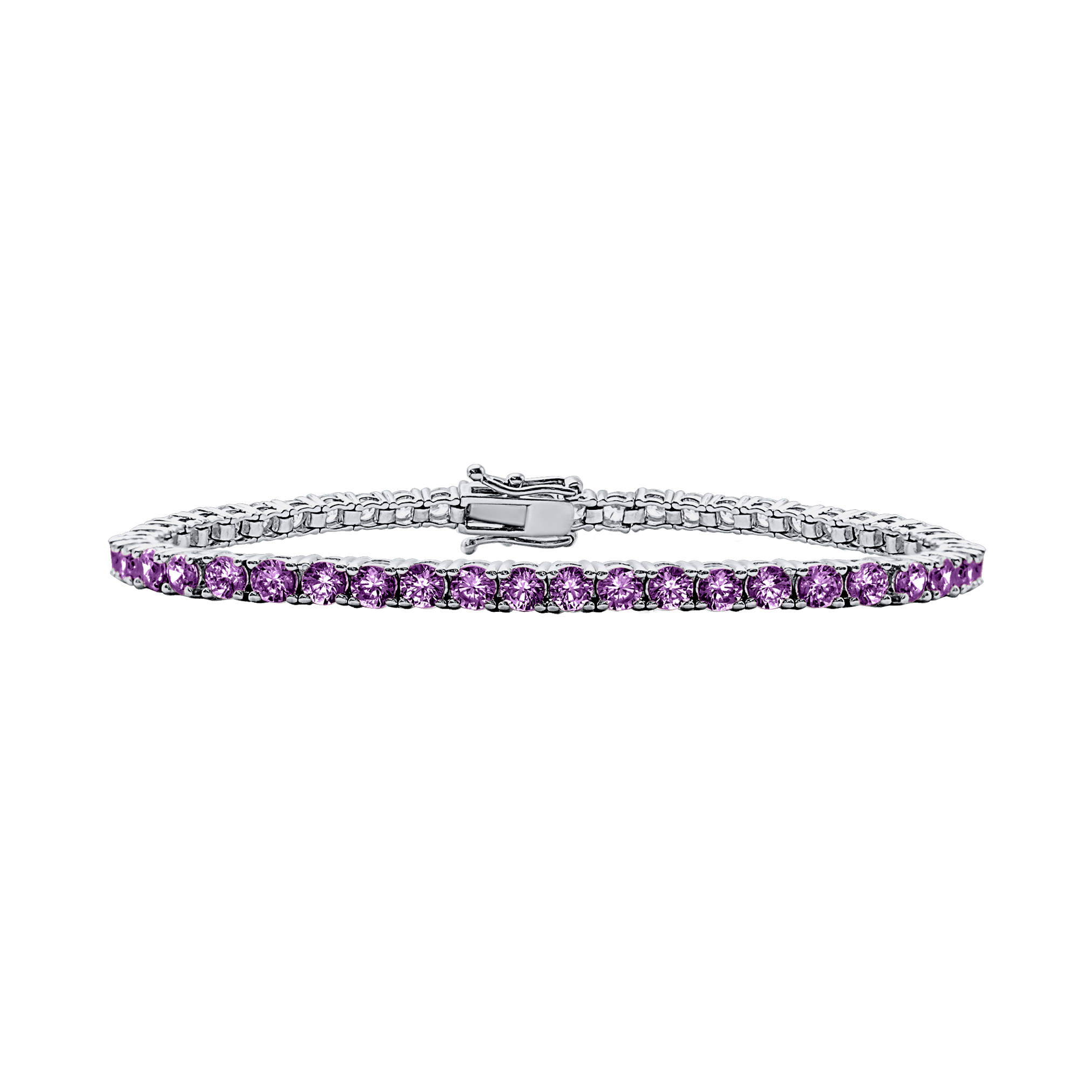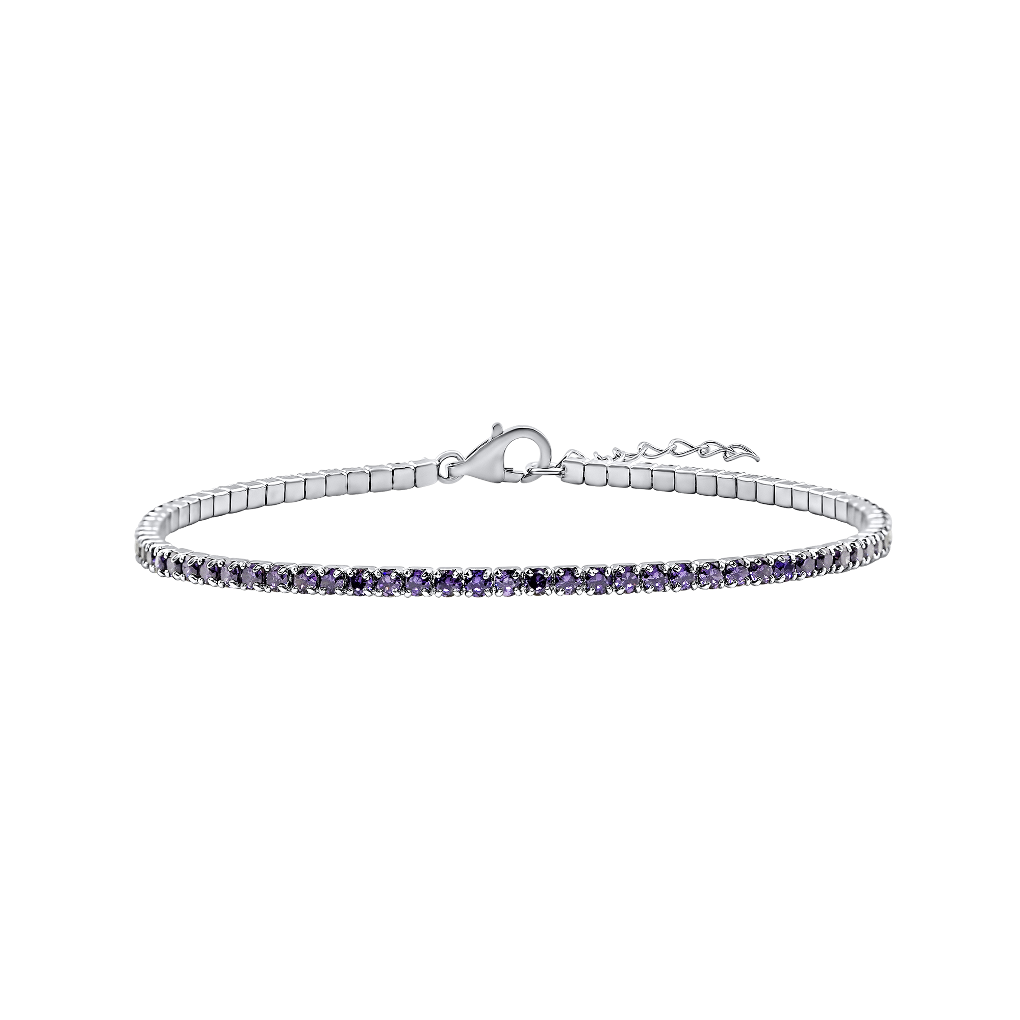 Tennis Bracelet with Amethyst Colored CZ in Sterling Silver (2 mm - 4 mm)