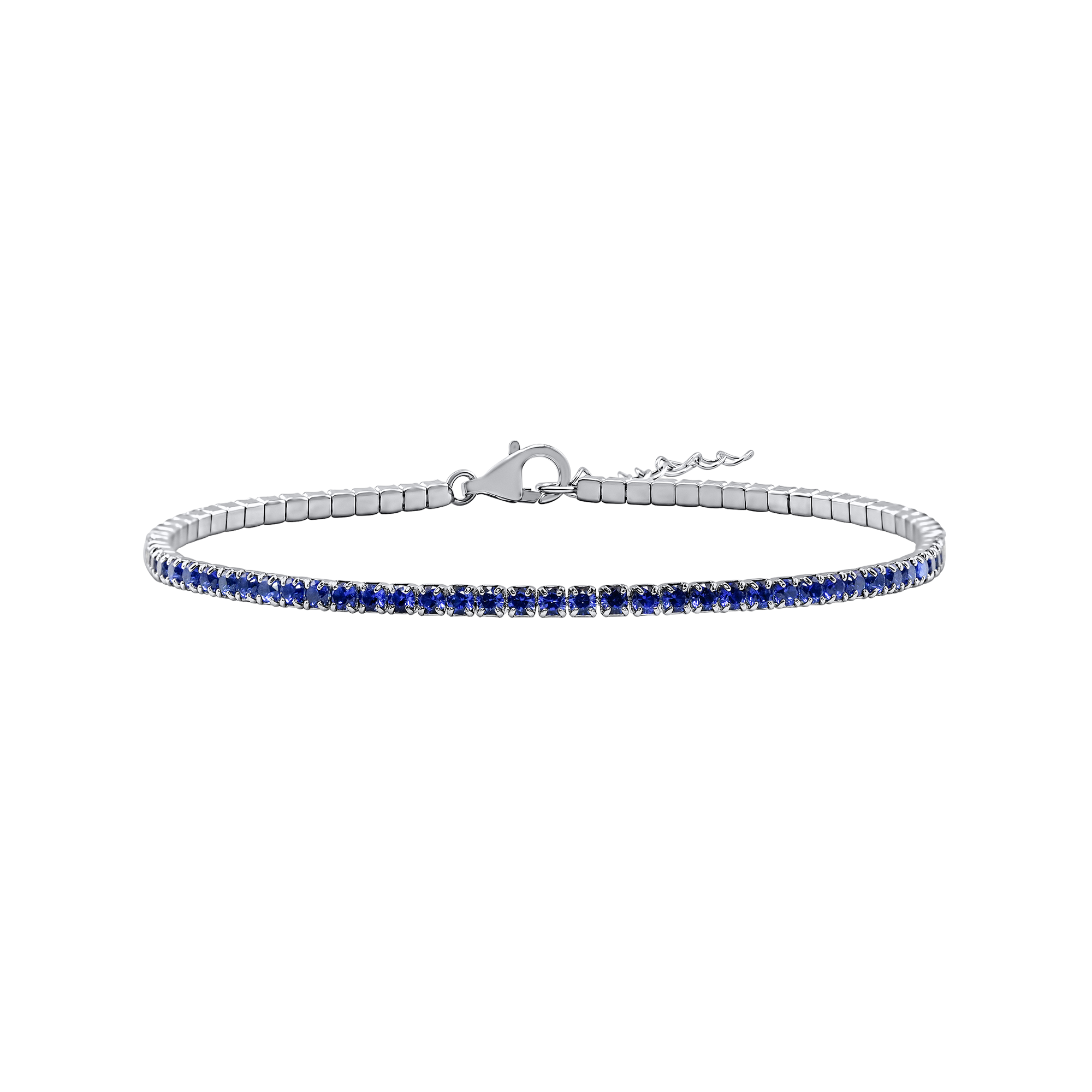Tennis Bracelet with Sapphire Colored CZ in Sterling Silver (2 mm - 4 mm)