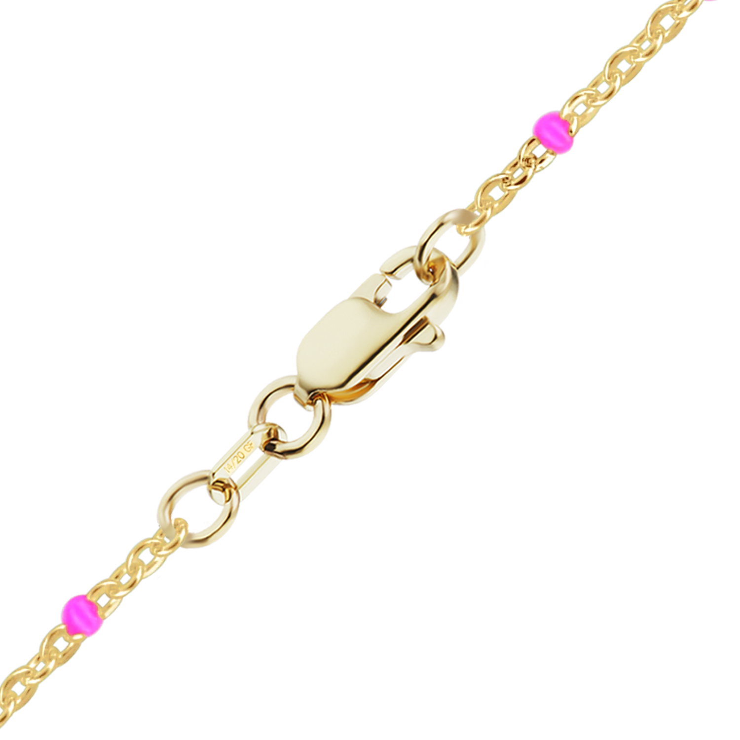 Finished Cable Bracelet with Pink Enamel Beads in 14K Gold-Filled