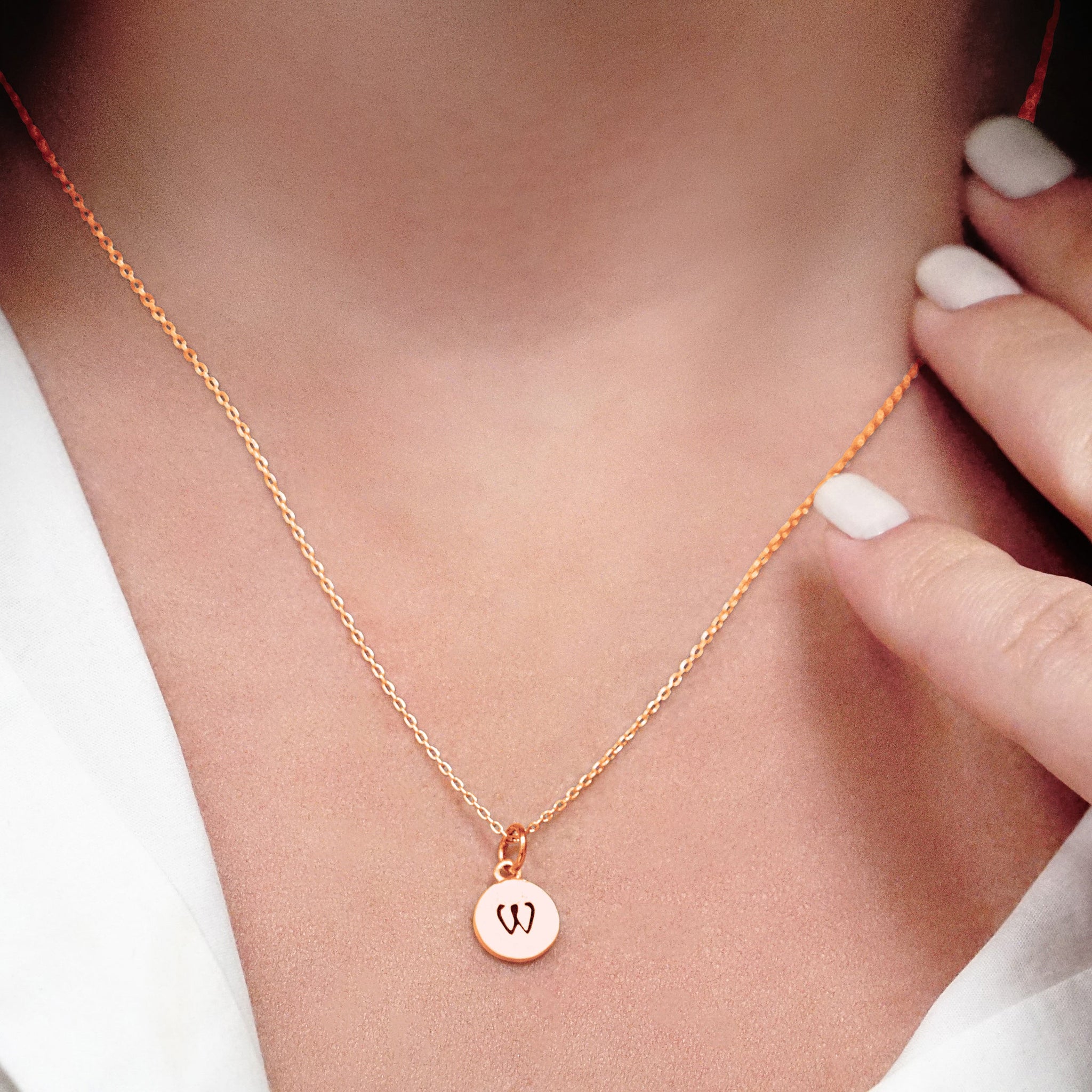 This precious and exclusively available delicate initial pendant is produced in 100% genuine 925 Sterling Silver and is available in White Rhodium Finish, 18K Yellow Gold Finish and 18K Rose Gold Finish.