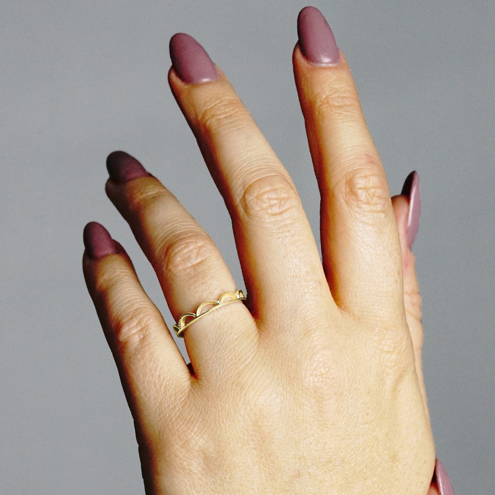 Stackable Ring with Scalloped Design in 14K Gold