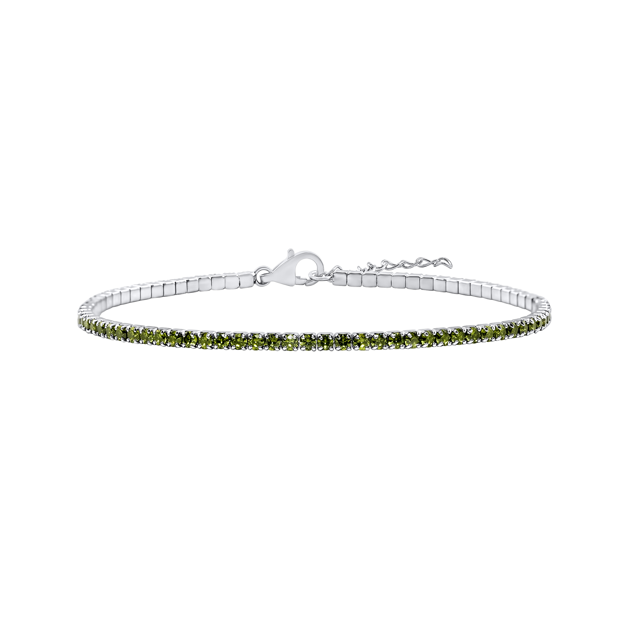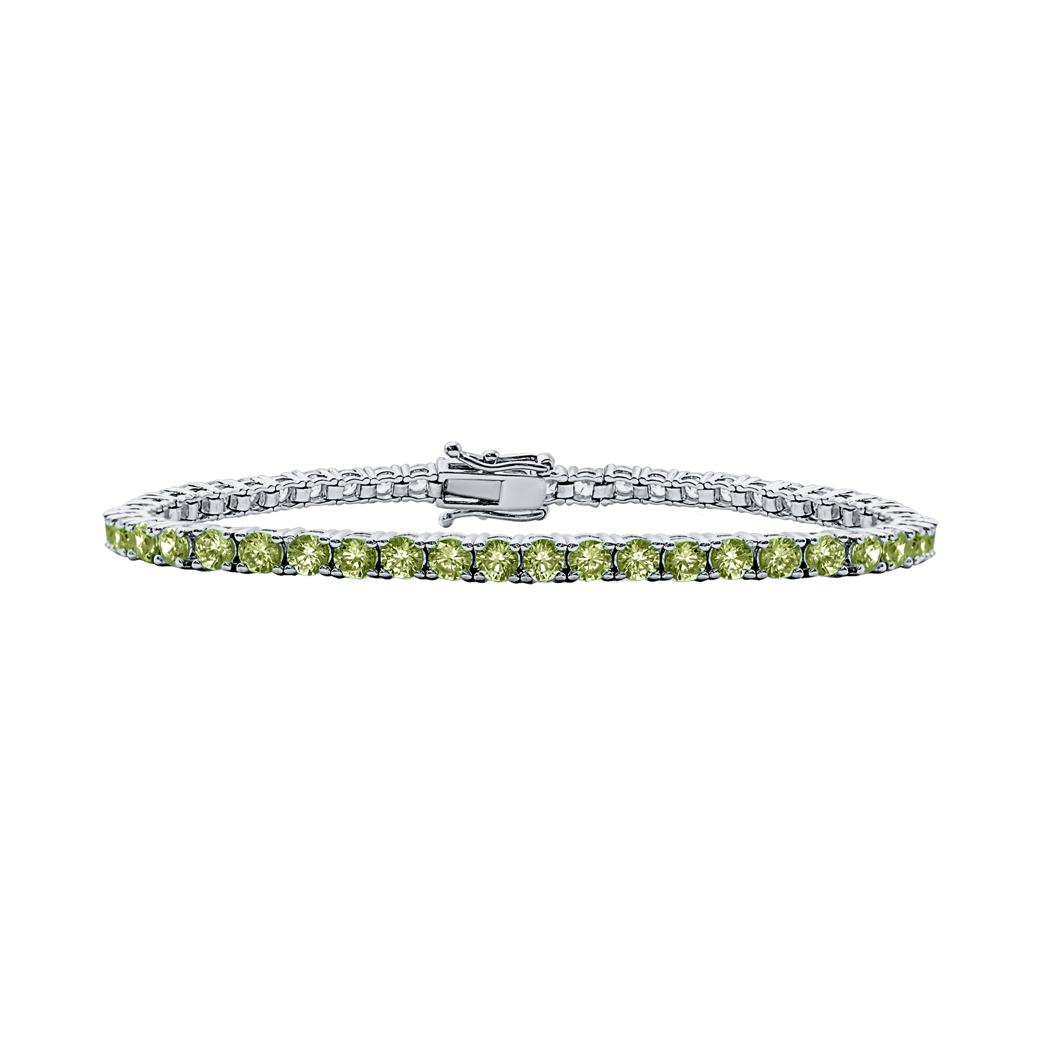 Tennis Bracelet with Peridot Colored CZ in Sterling Silver (2 mm - 4 mm)