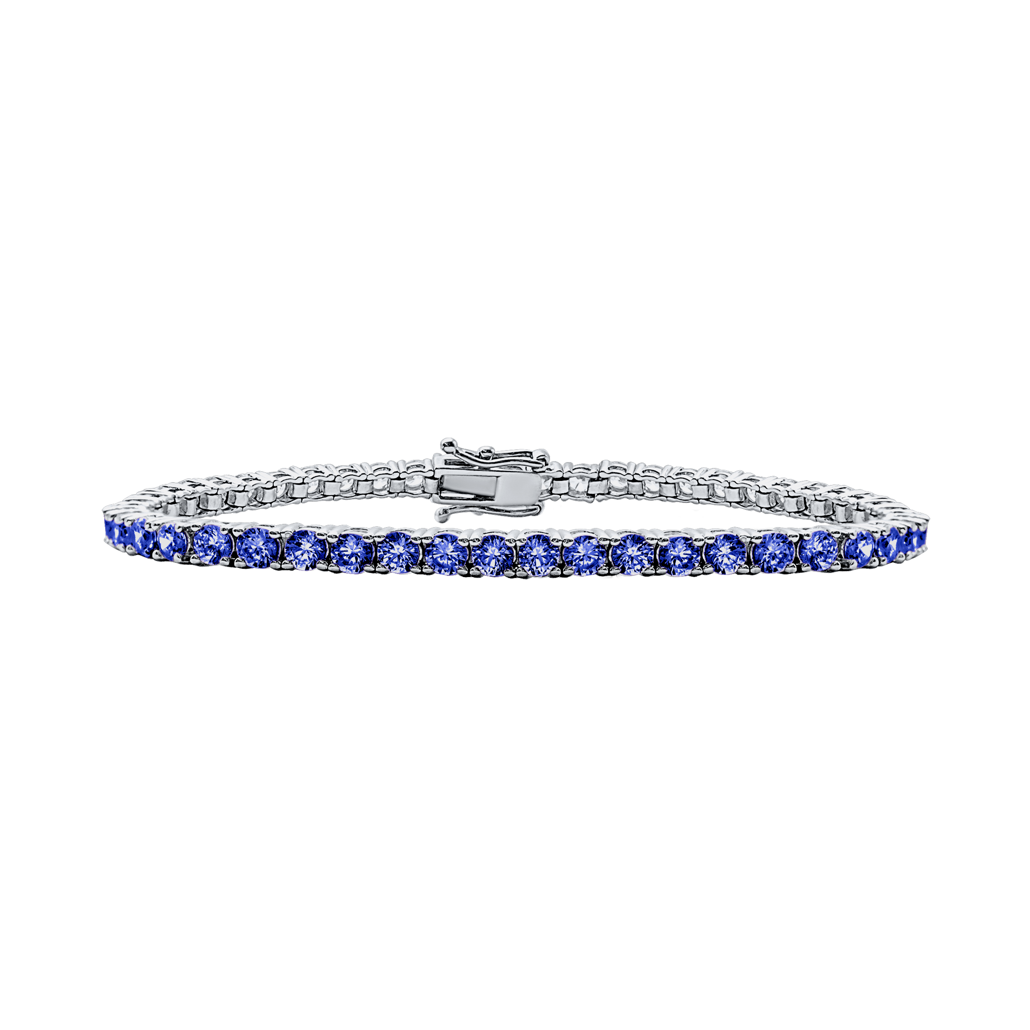 Tennis Bracelet with Sapphire Colored CZ in Sterling Silver (2 mm - 4 mm)