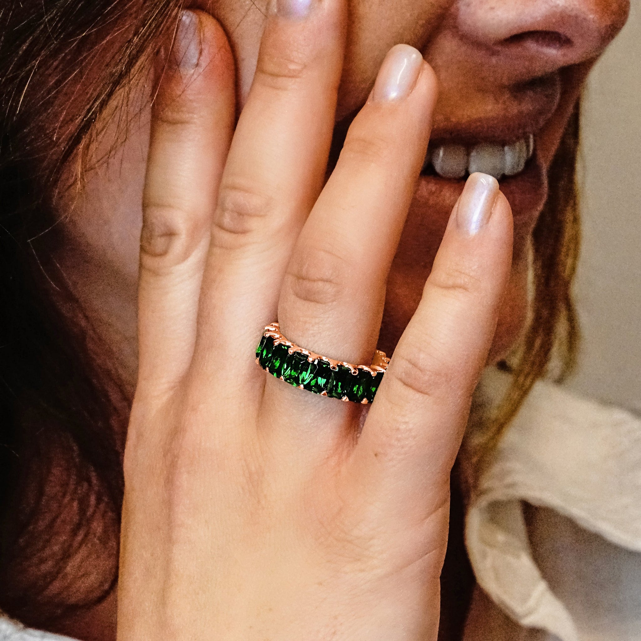 All Around Emerald Shape Green Colored Stone Ring (6.0 x 4.0 mm)