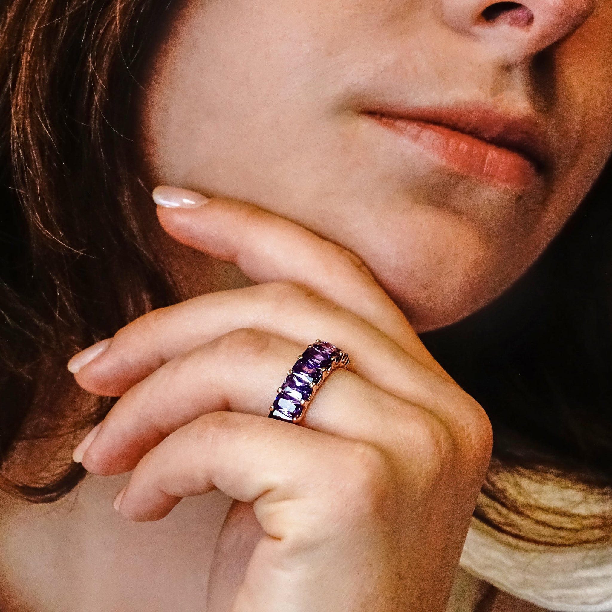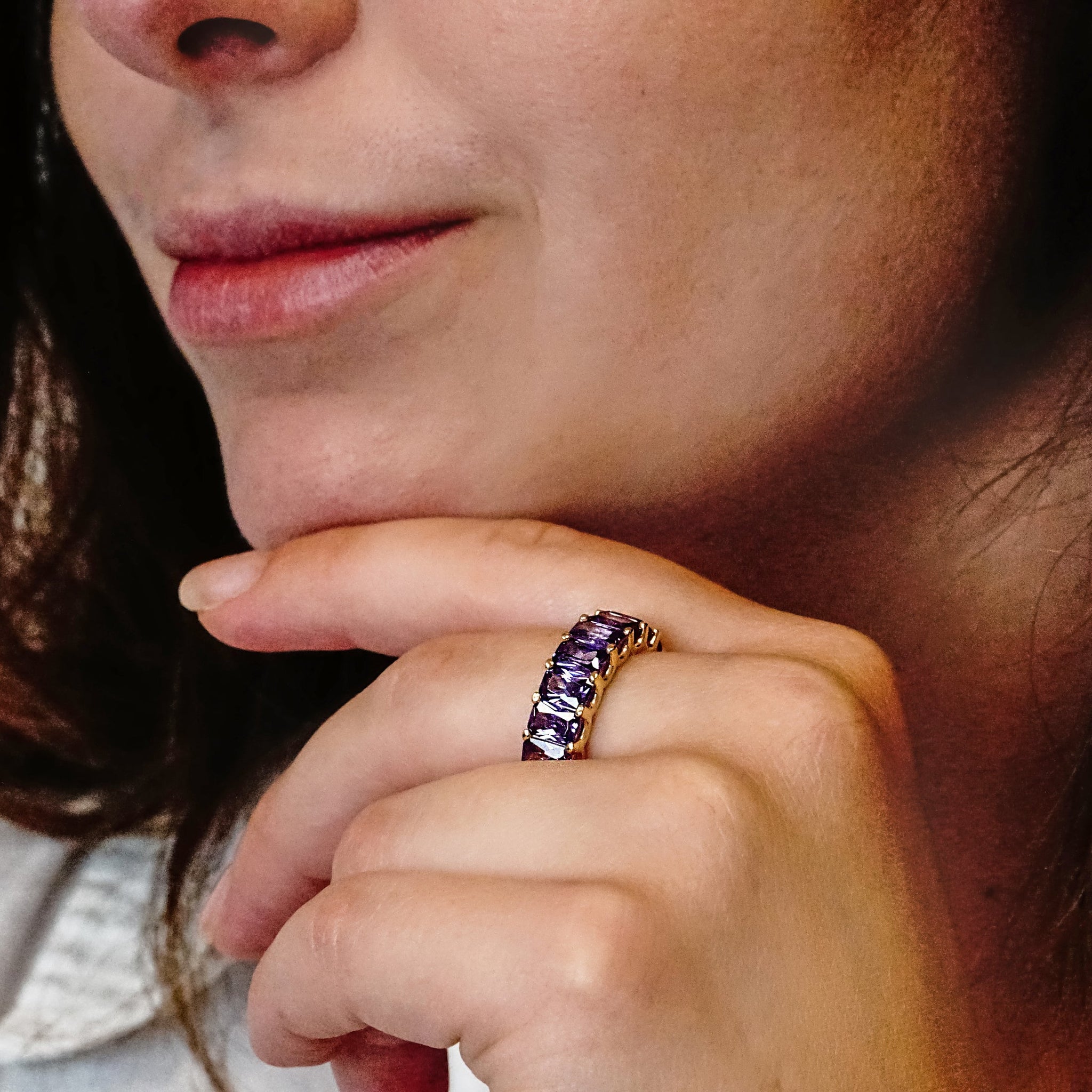 All Around Emerald Shape Purple Colored Stone Ring (6.0 x 4.0 mm)