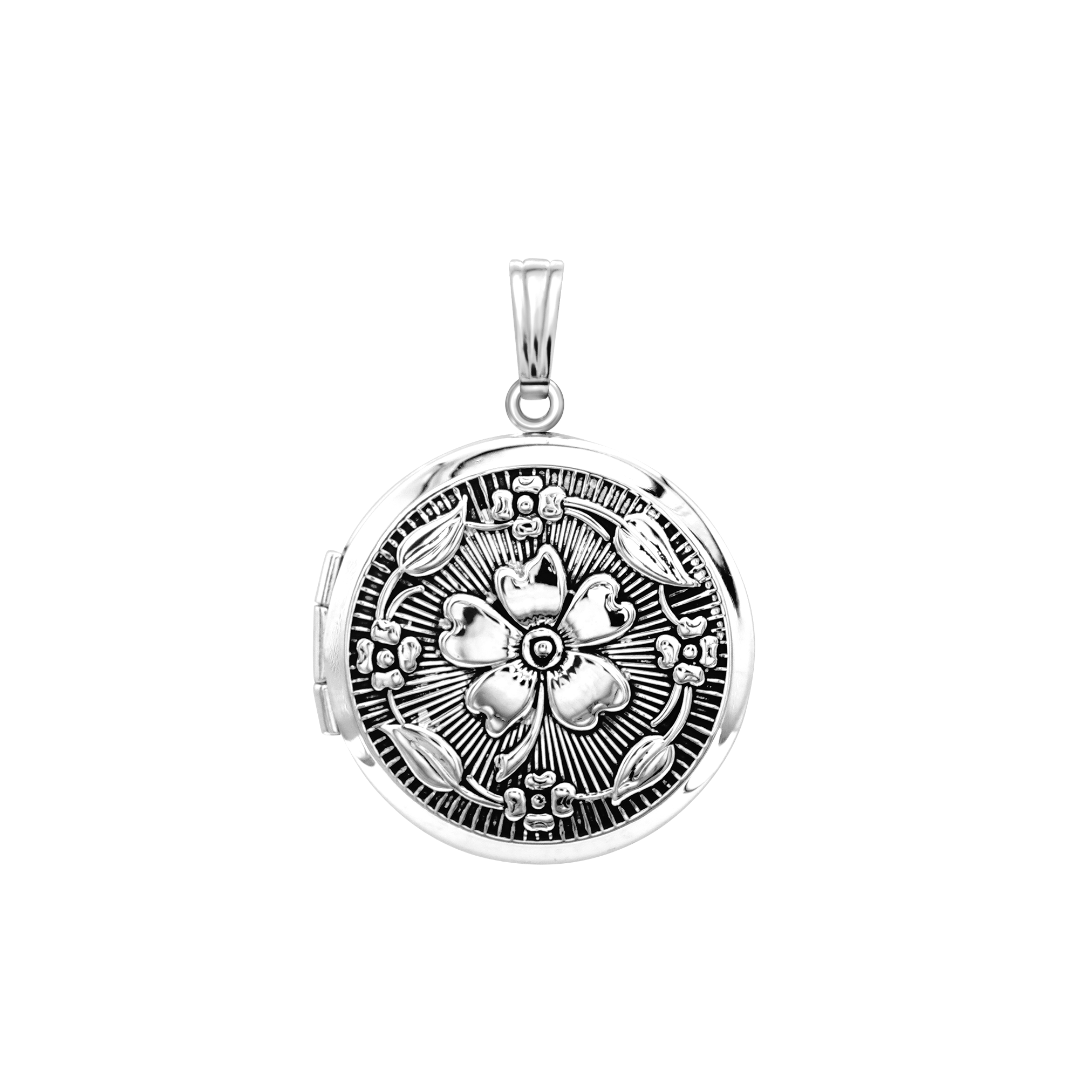 ITI NYC Antique Finish Embossed Round Locket in Sterling Silver with Optional Engraving (32 x 24 mm)
