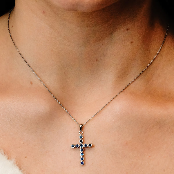 This precious and exclusively available cross has a sparkling bezel set design and is produced in 100% genuine 585 Gold. This item is made with full cut 100% genuine Ceylon sapphires of .55ct (TW) for enhanced beauty and quality.