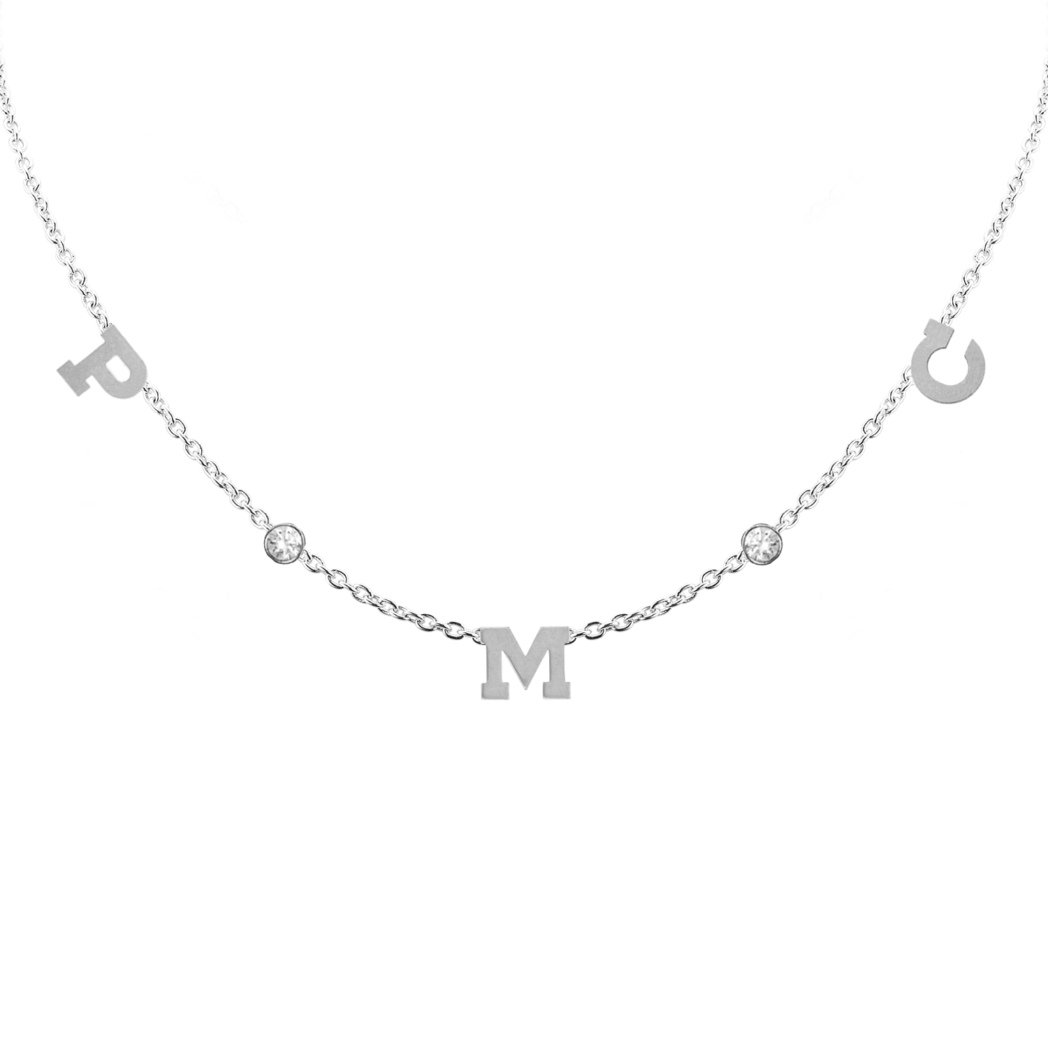 Clarenwood Initial and Gemstone Necklace in 14K White Gold (Medium Round Cable)