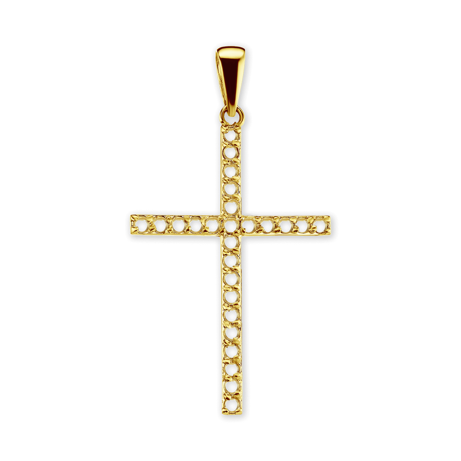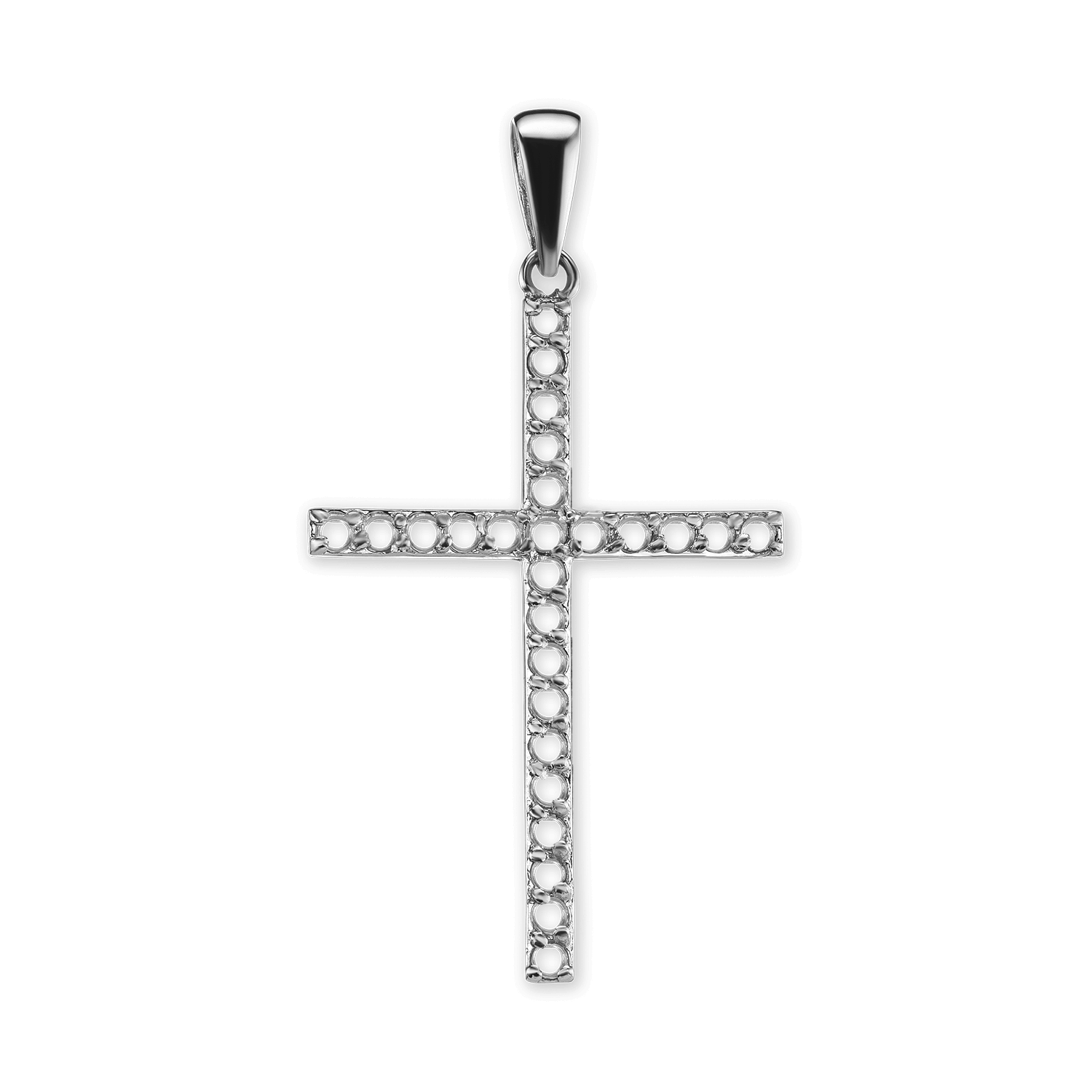14K Gold Contemporary Thin Cross 26 Stone Pendant Mounting (44 x 24 mm)
