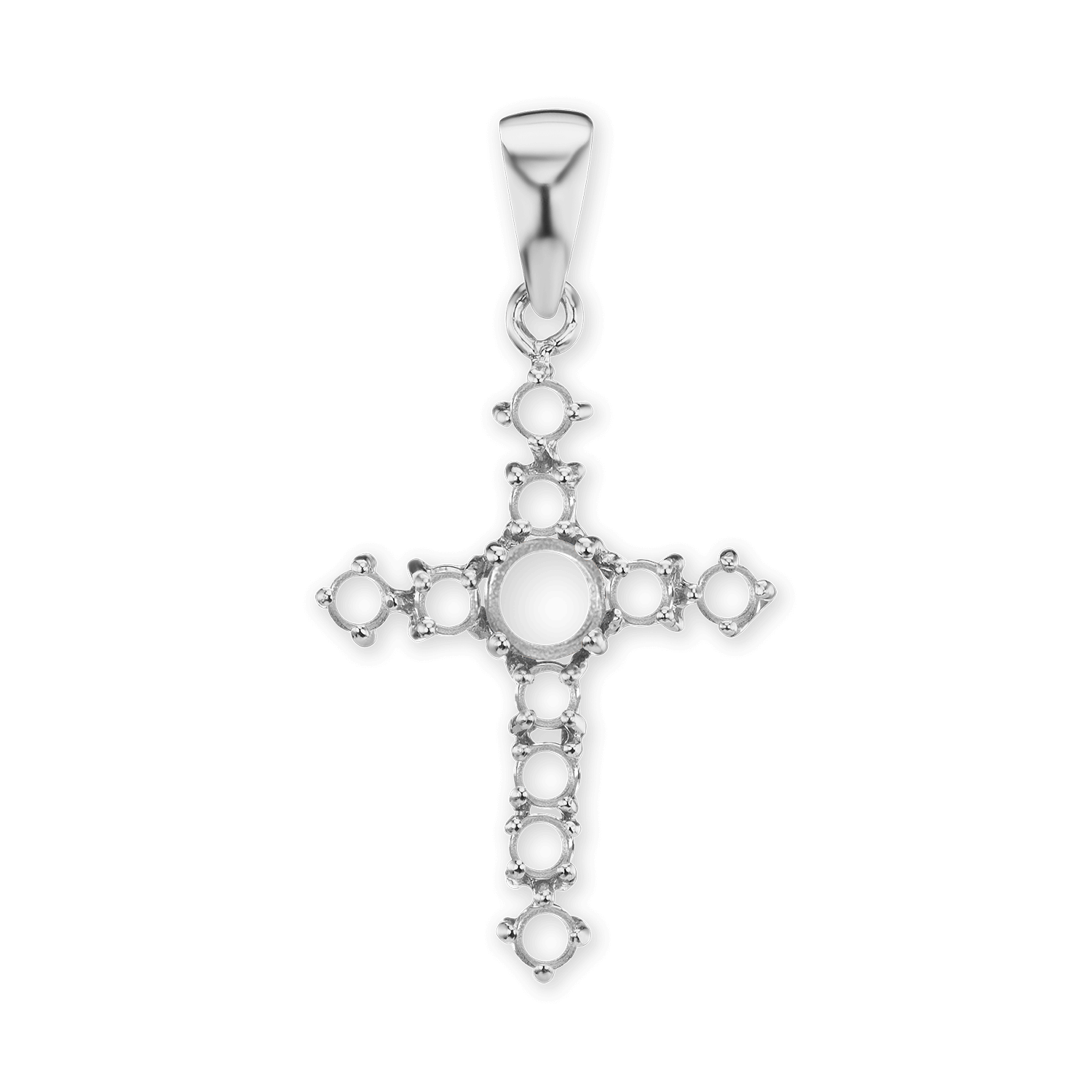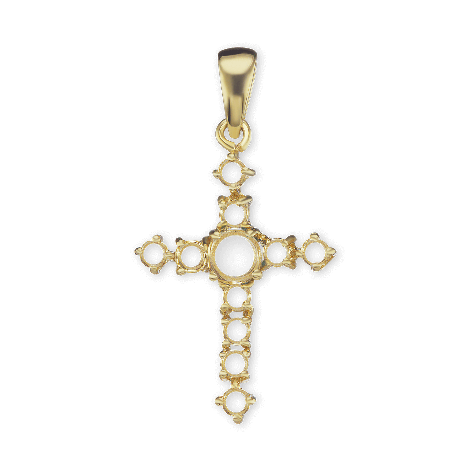 14K Gold Contemporary Cross 11 Stone Pendant Mounting (35 x 18 mm)