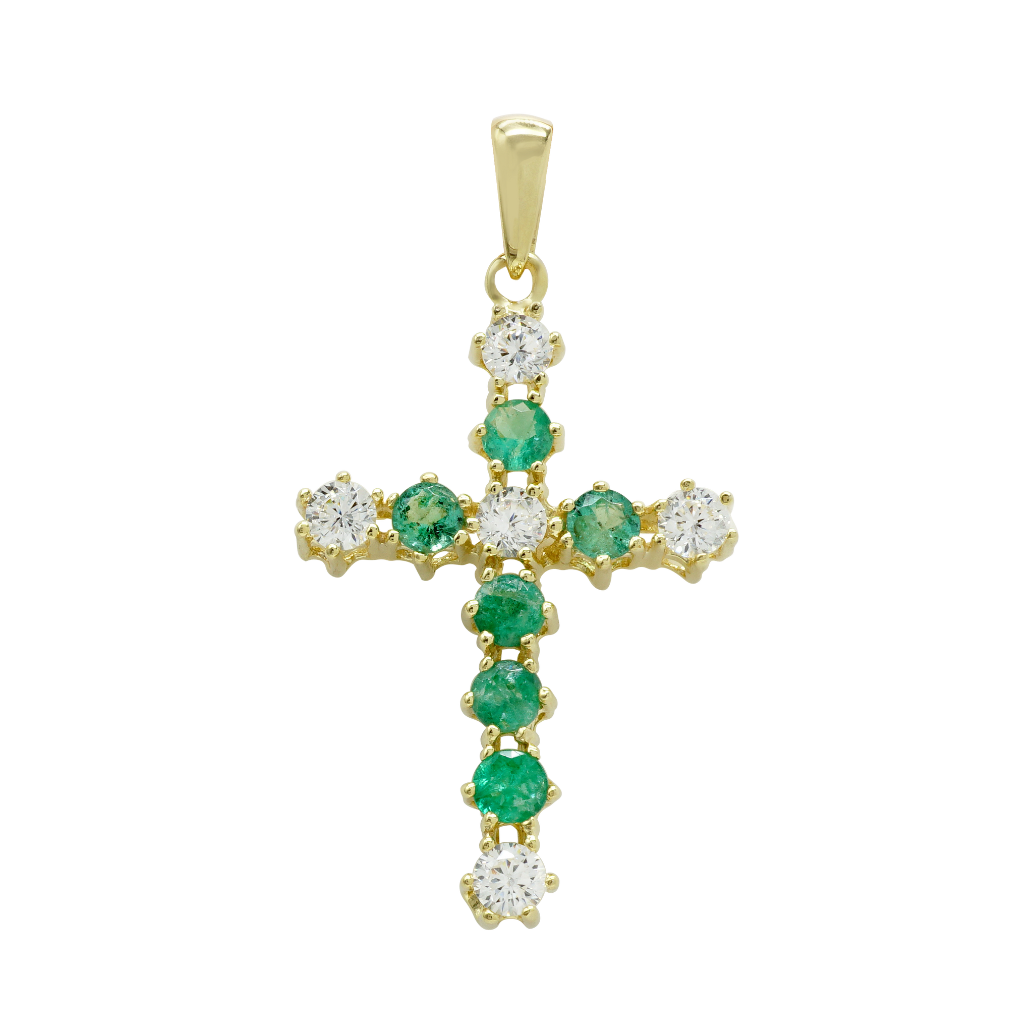 ITI NYC 14K Yellow Gold Cross Pendant with Diamonds and Emeralds