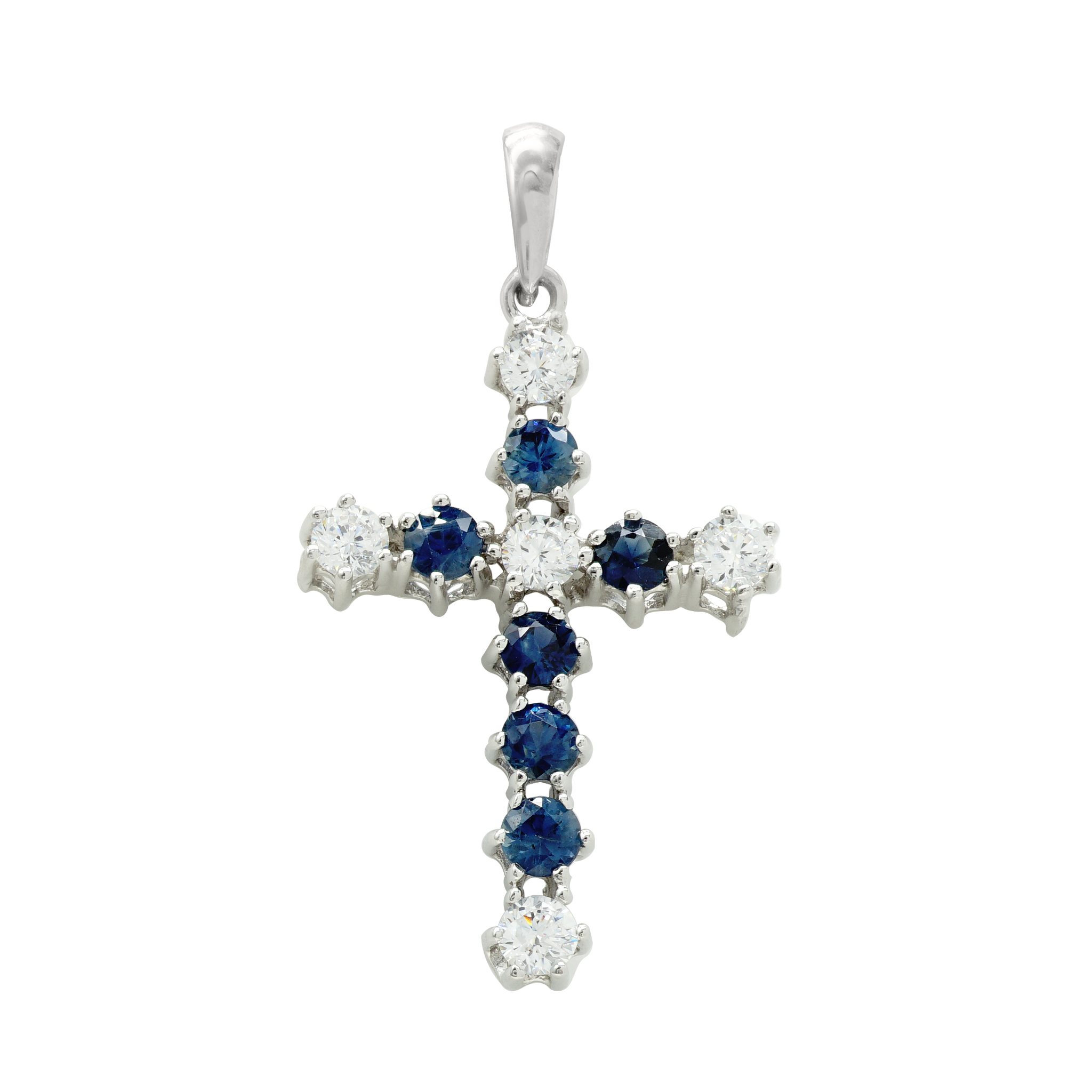 ITI NYC Cross Pendant with Diamonds and Sapphire Stones in 14K Gold