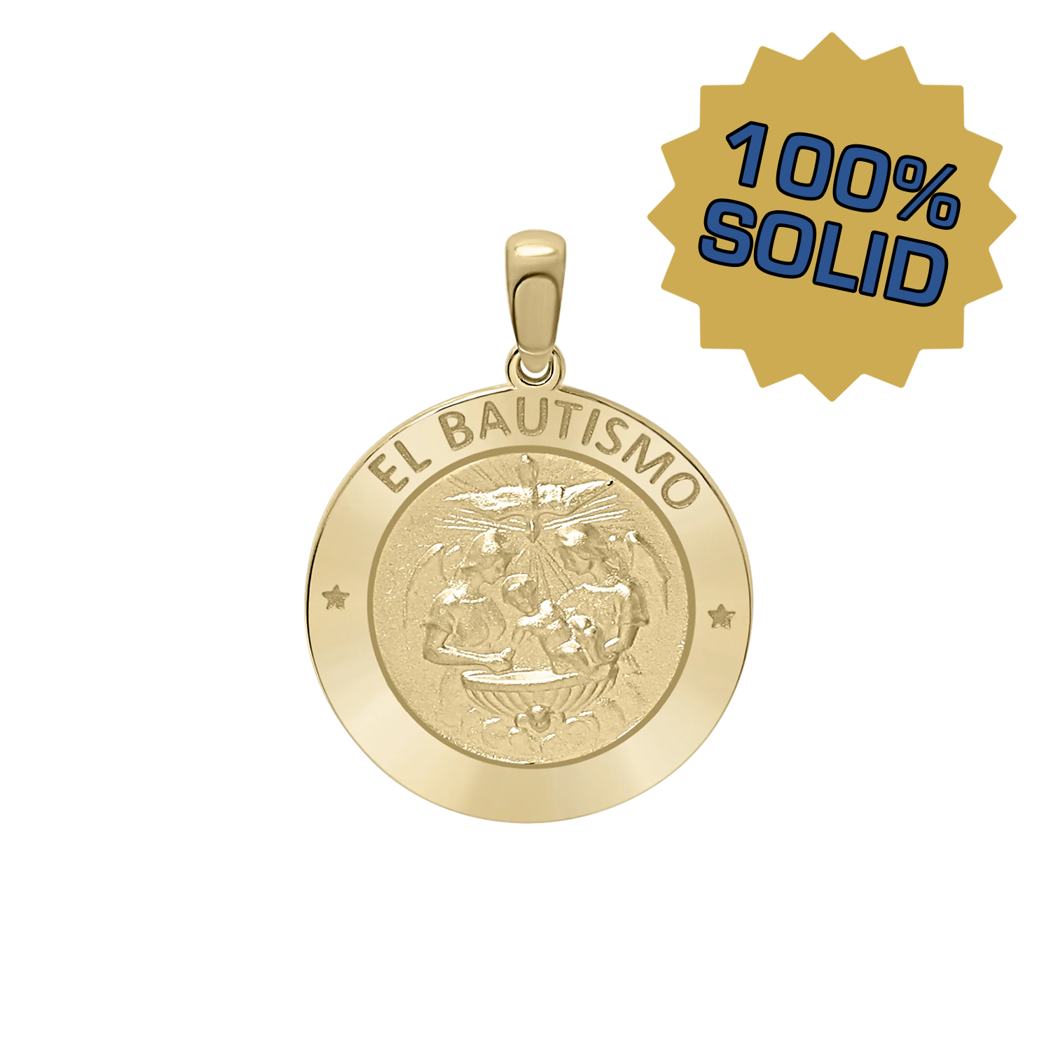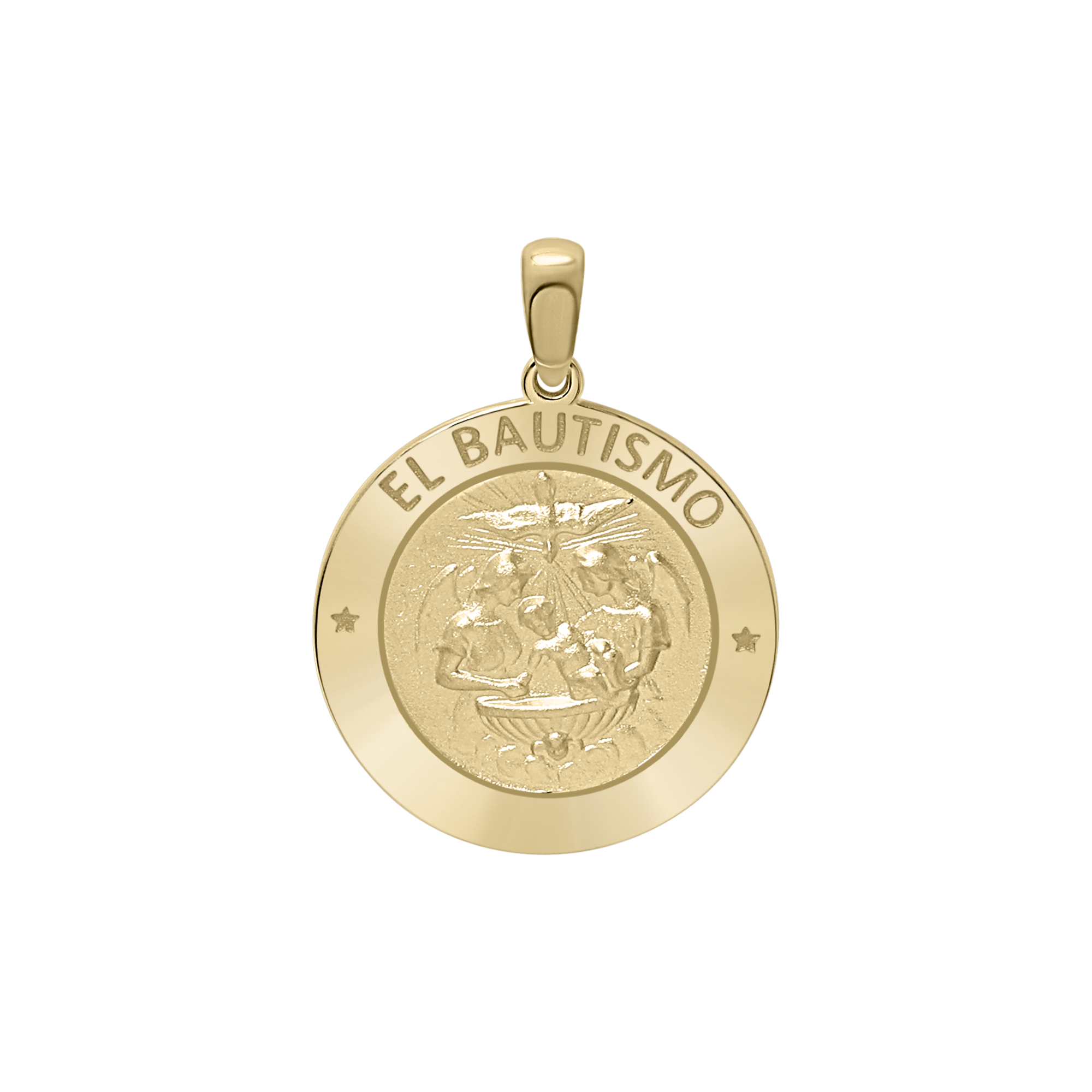 14K Gold Round El Bautismo Medallion (3/4 inch)