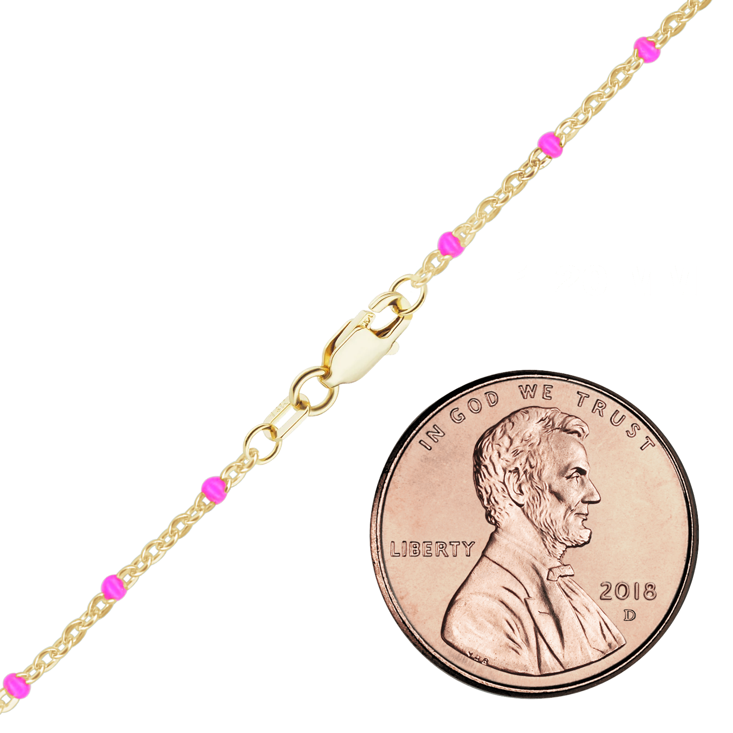 Finished Cable Bracelet with Pink Enamel Beads in 14K Yellow Gold