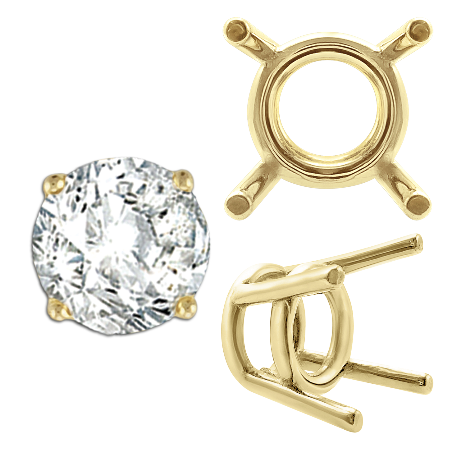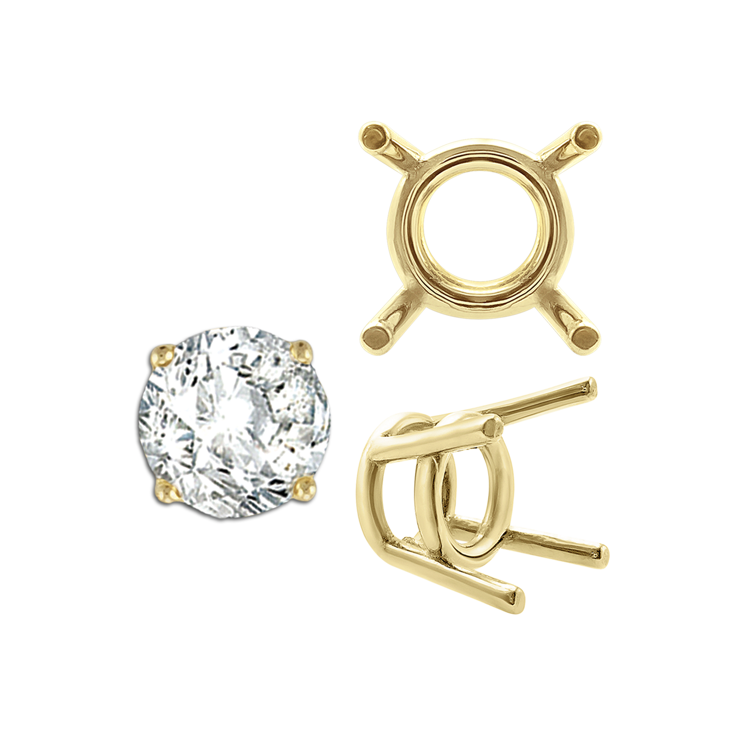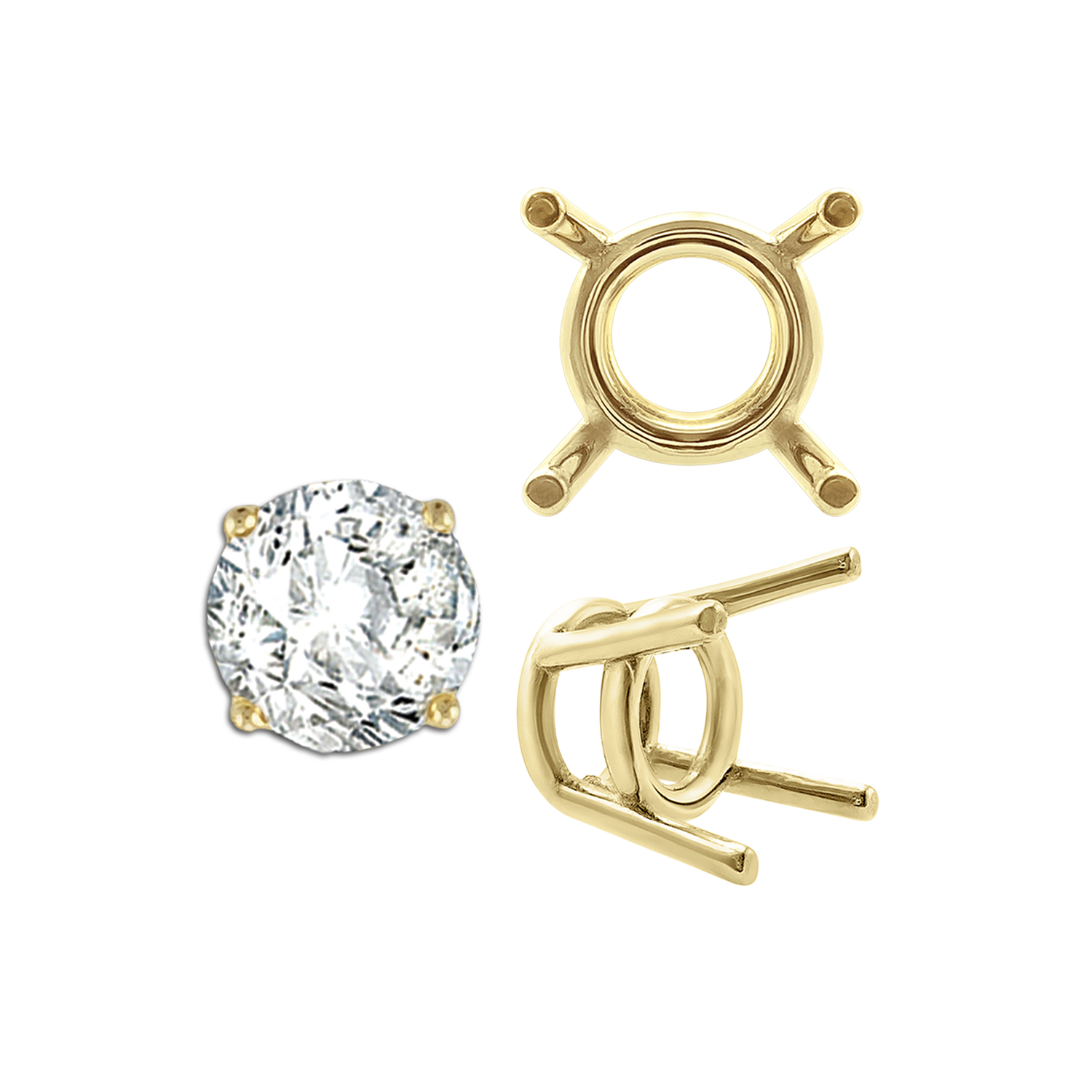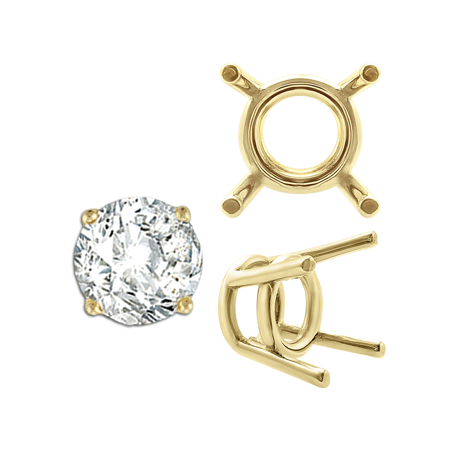 ITI NYC Four Prong Round Medium Weight Settings in 14K Gold (1.75 mm - 11.00 mm)