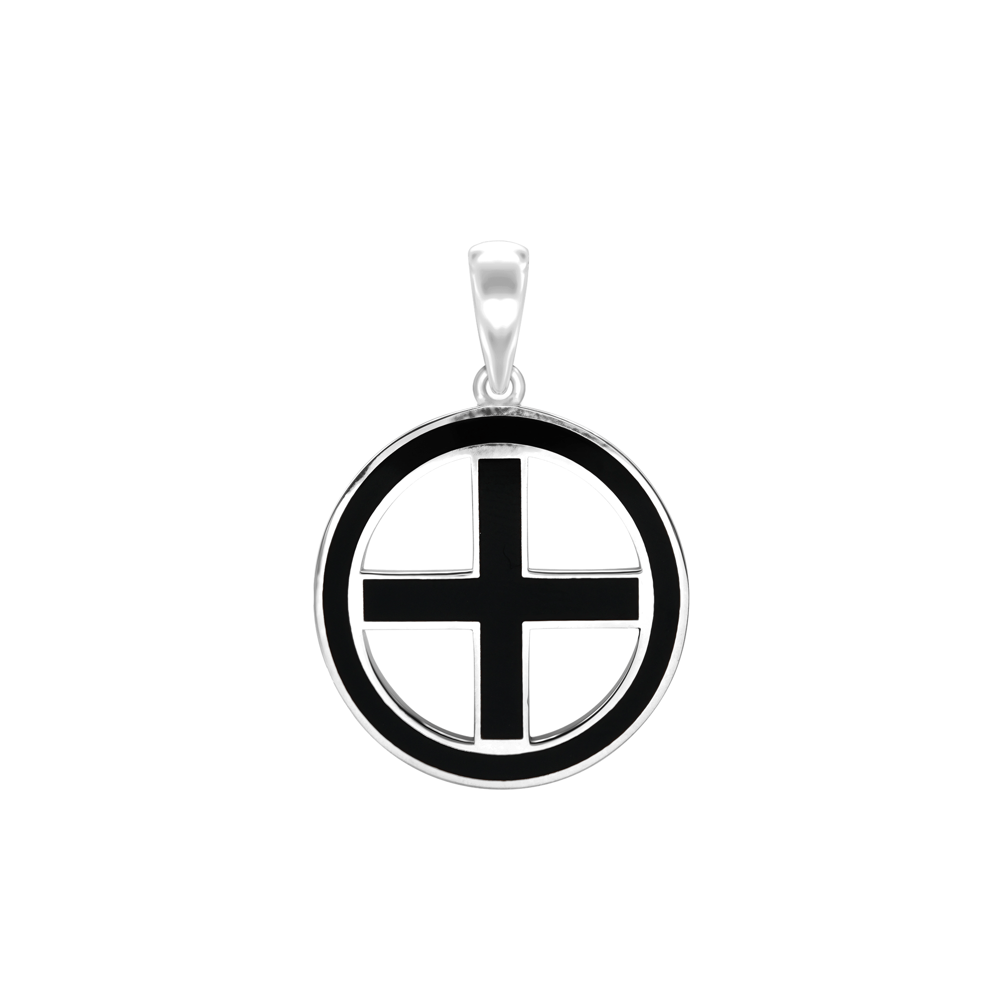 ITI NYC Greek Cross Pendant Medallion with Black Enamel in Sterling Silver