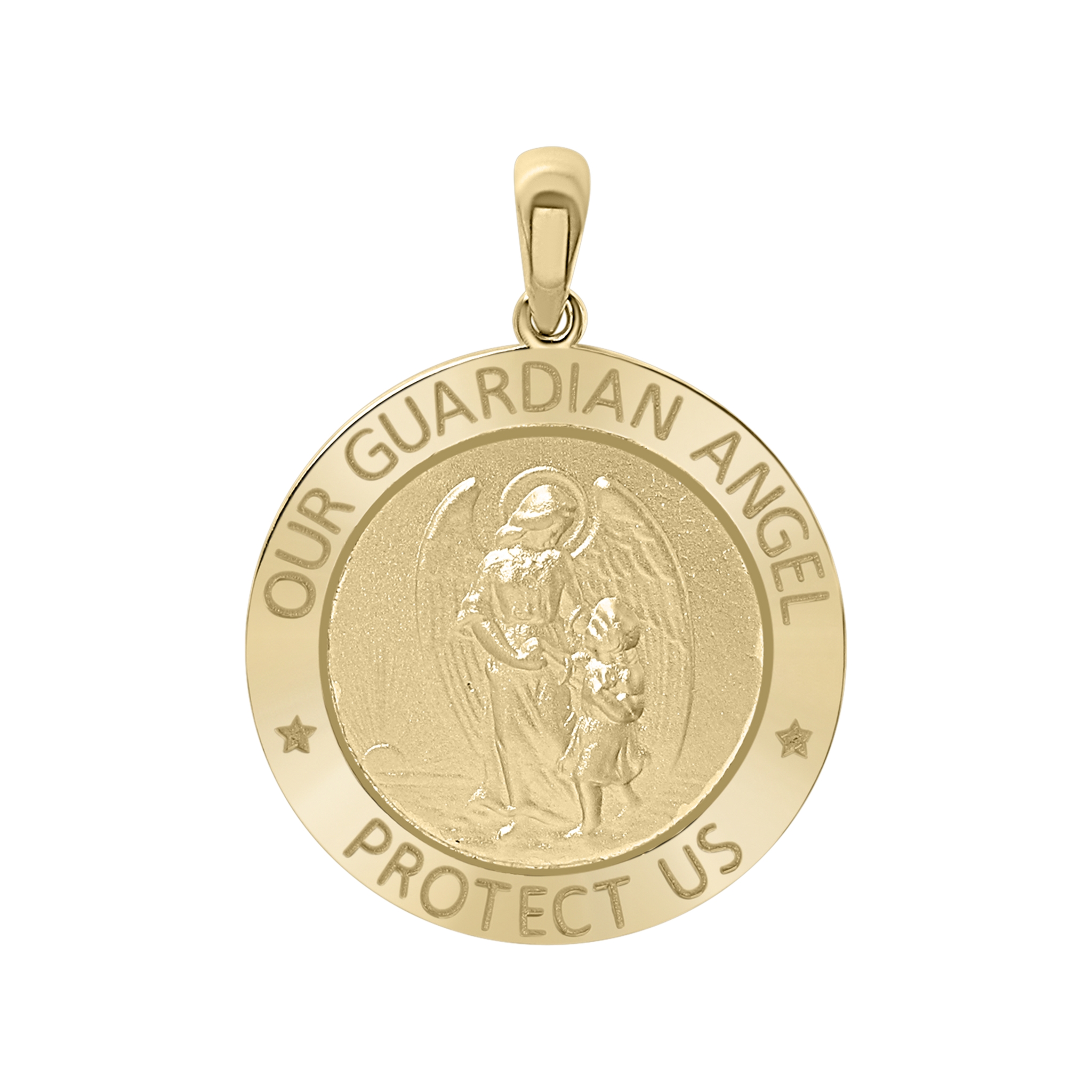 14K Gold Round Guardian Angel Medallion (1/2 inch - 1 inch)