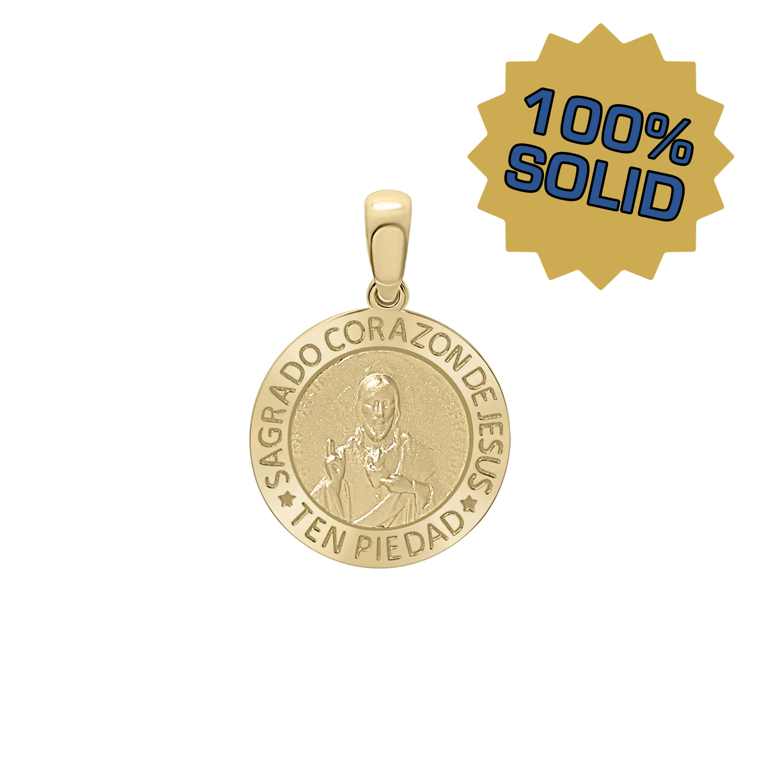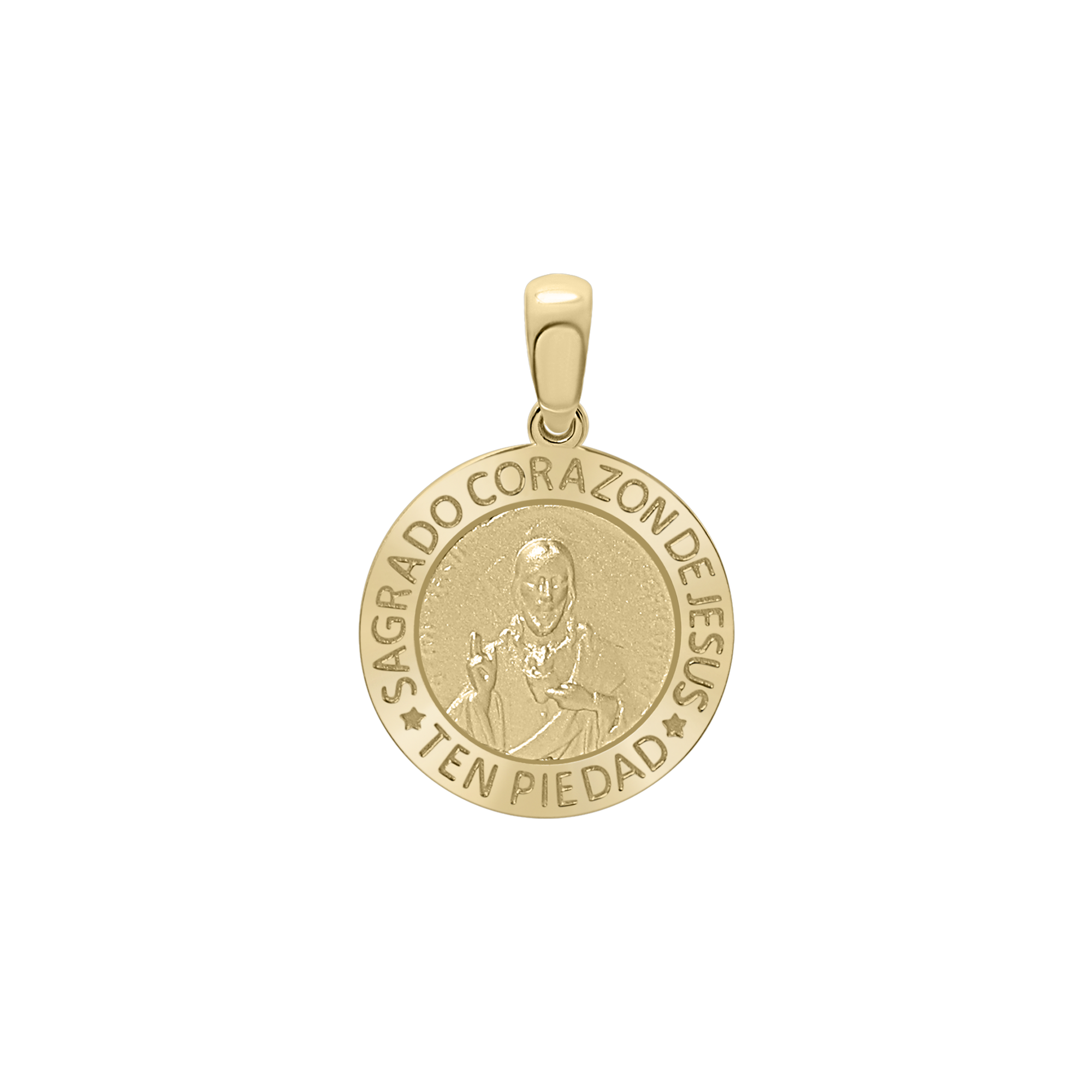 14K Gold Round Sagrado Corazon de Jesus Medallion (5/8 inch)
