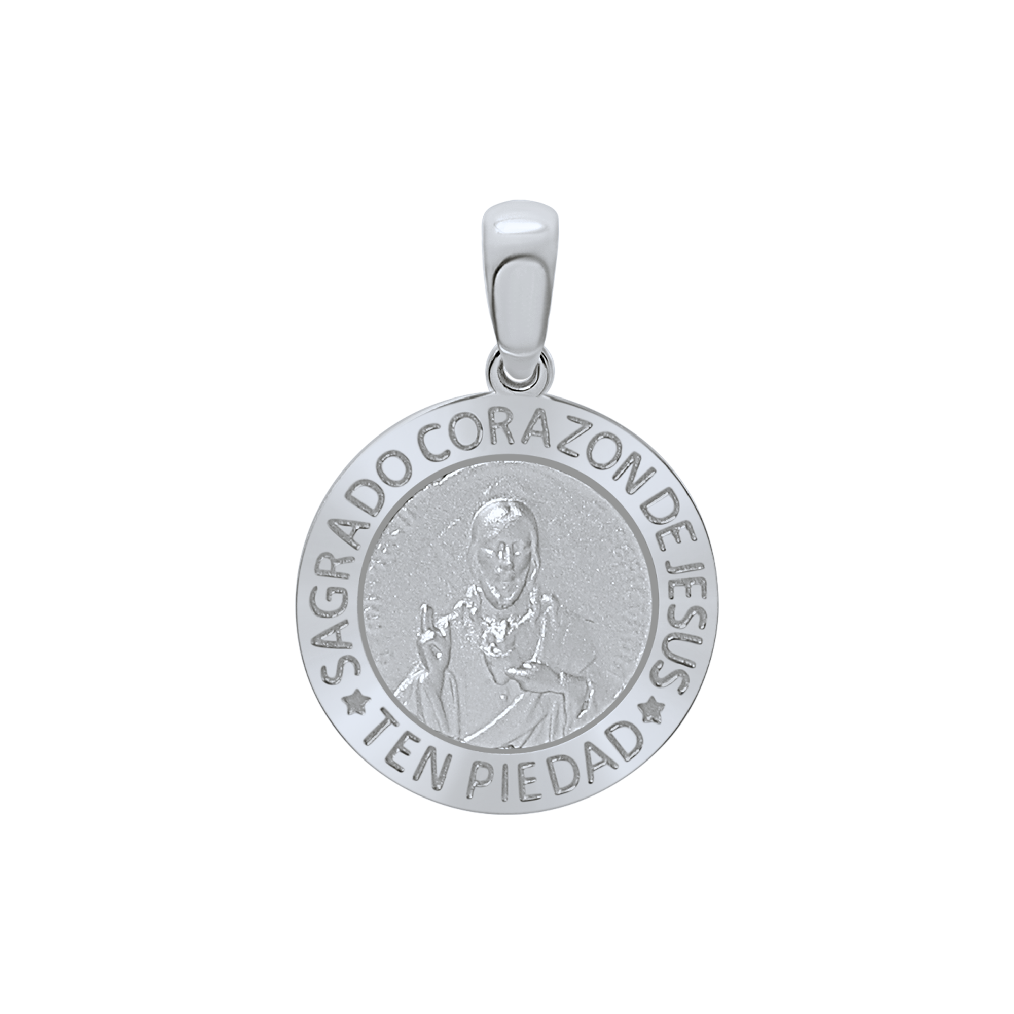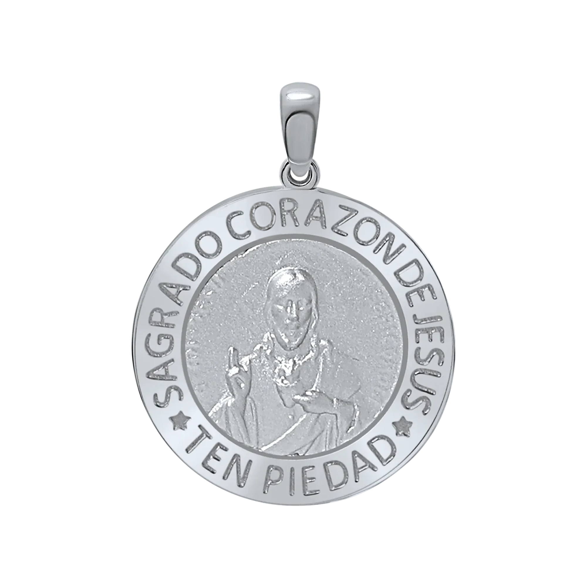 Sterling Silver Round Sagrado Corazon de Jesus Medallion (3/4 inch - 1 inch)