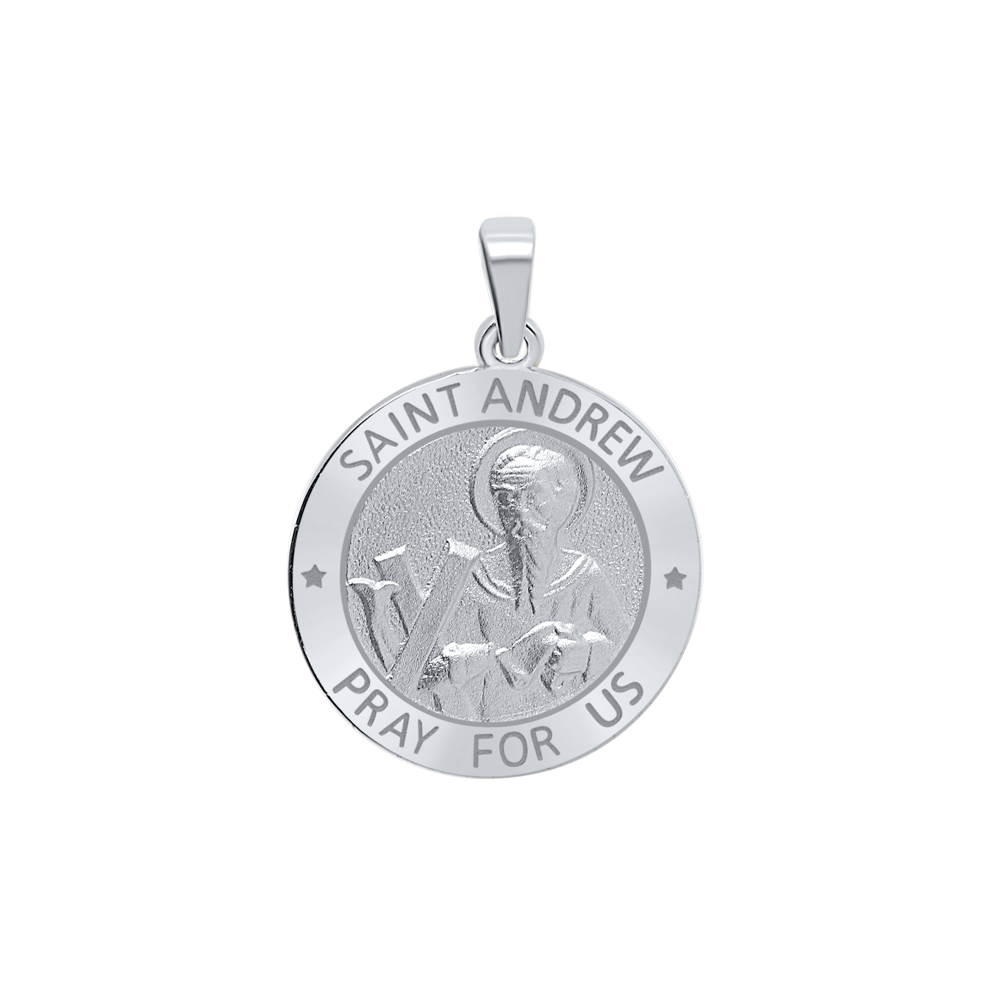 Sterling Silver Round Saint Andrew Medallion (5/8 inch - 3/4 inch)