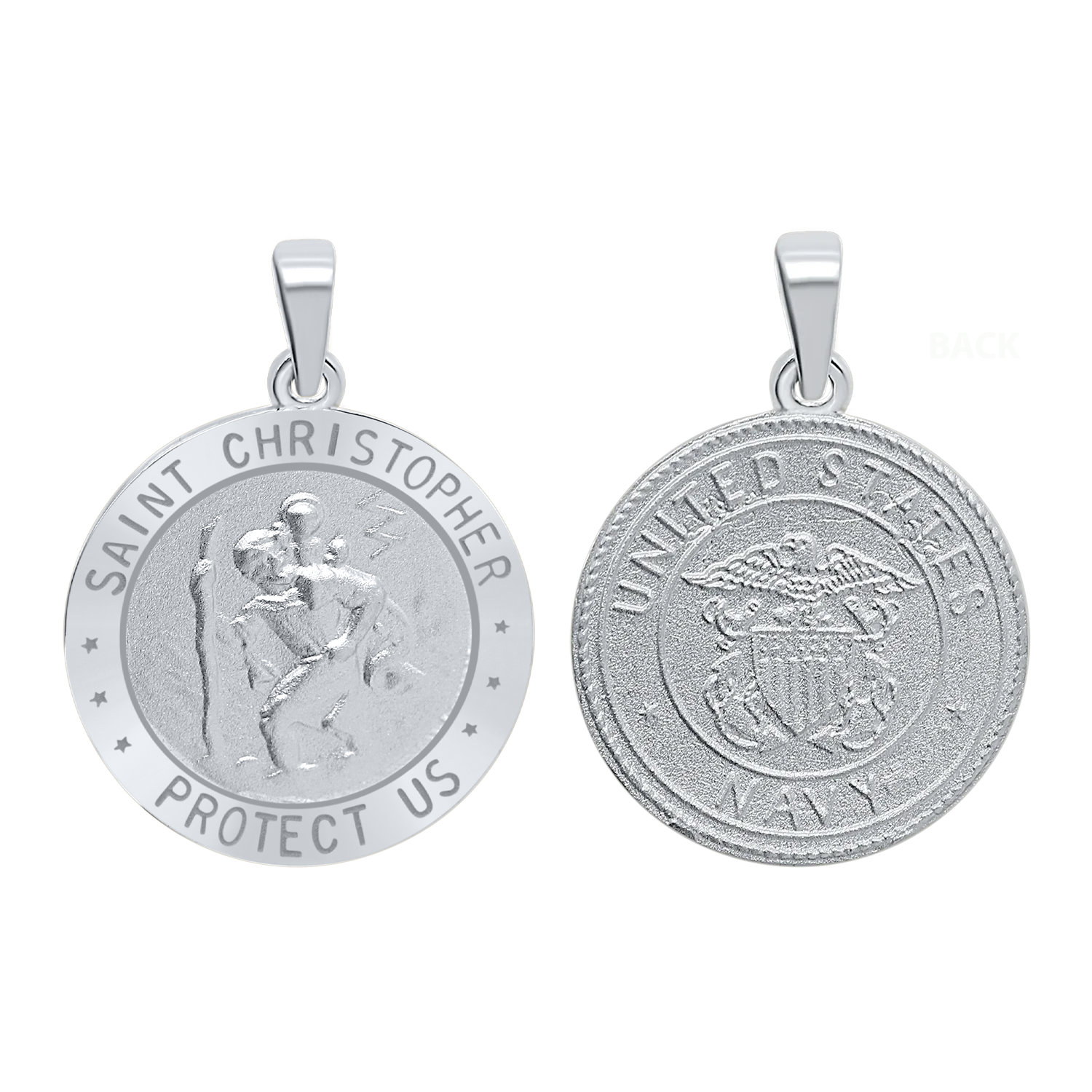 Sterling Silver Round Saint Christopher (Navy) Medallion (3/4 inch)