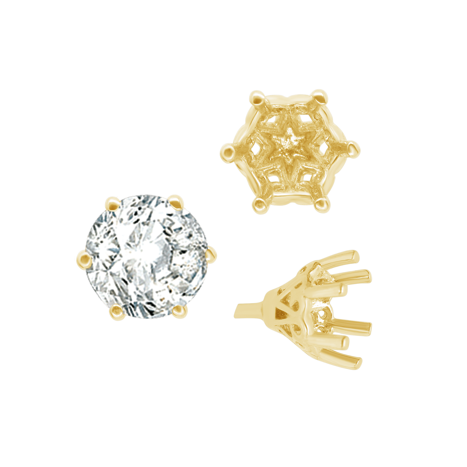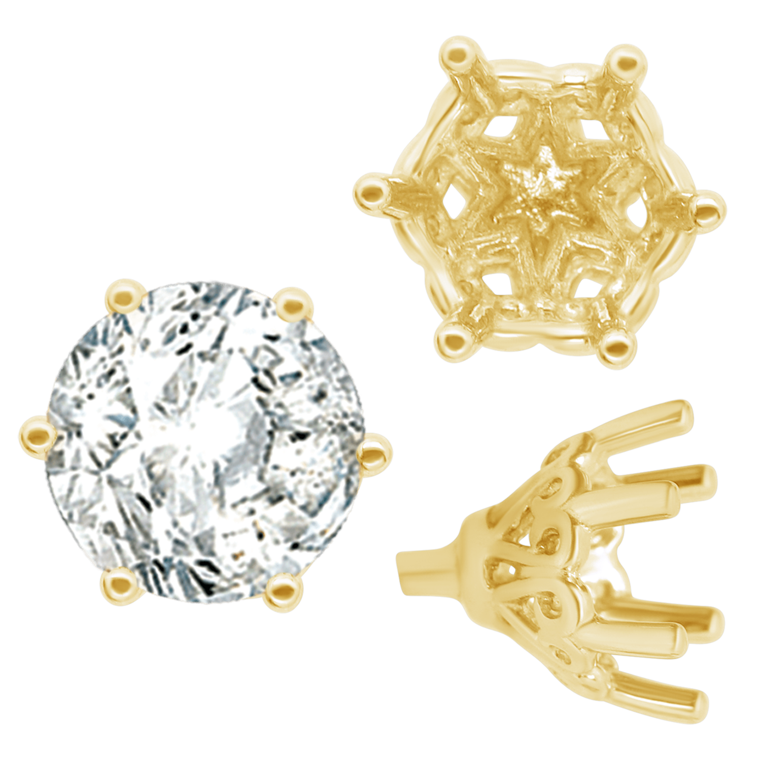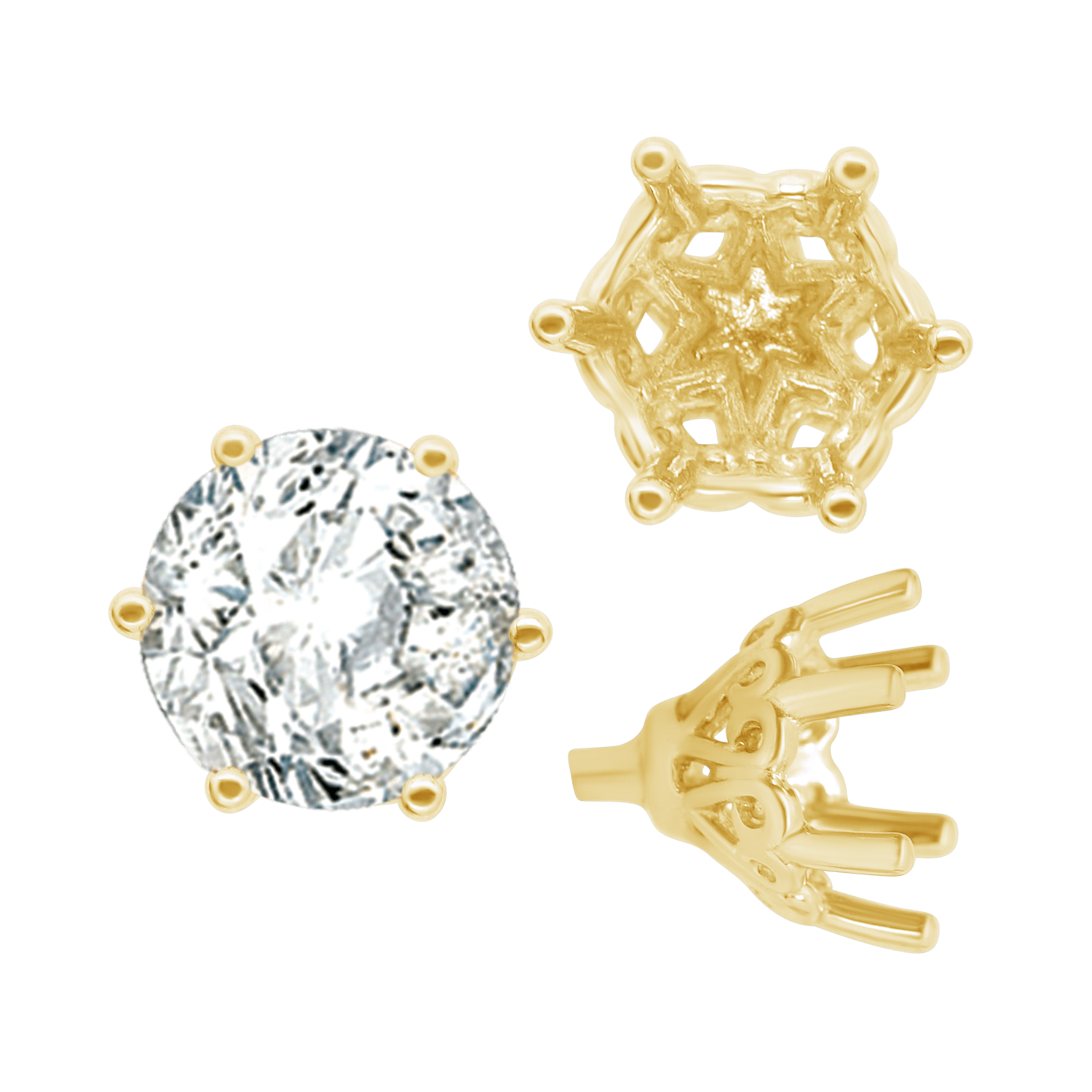 ITI NYC Six Prong Round Filigree Tapered Settings with Peg in 14K Gold (4.00 mm - 9.25 mm)