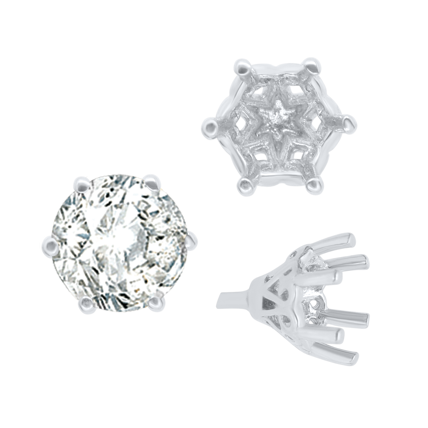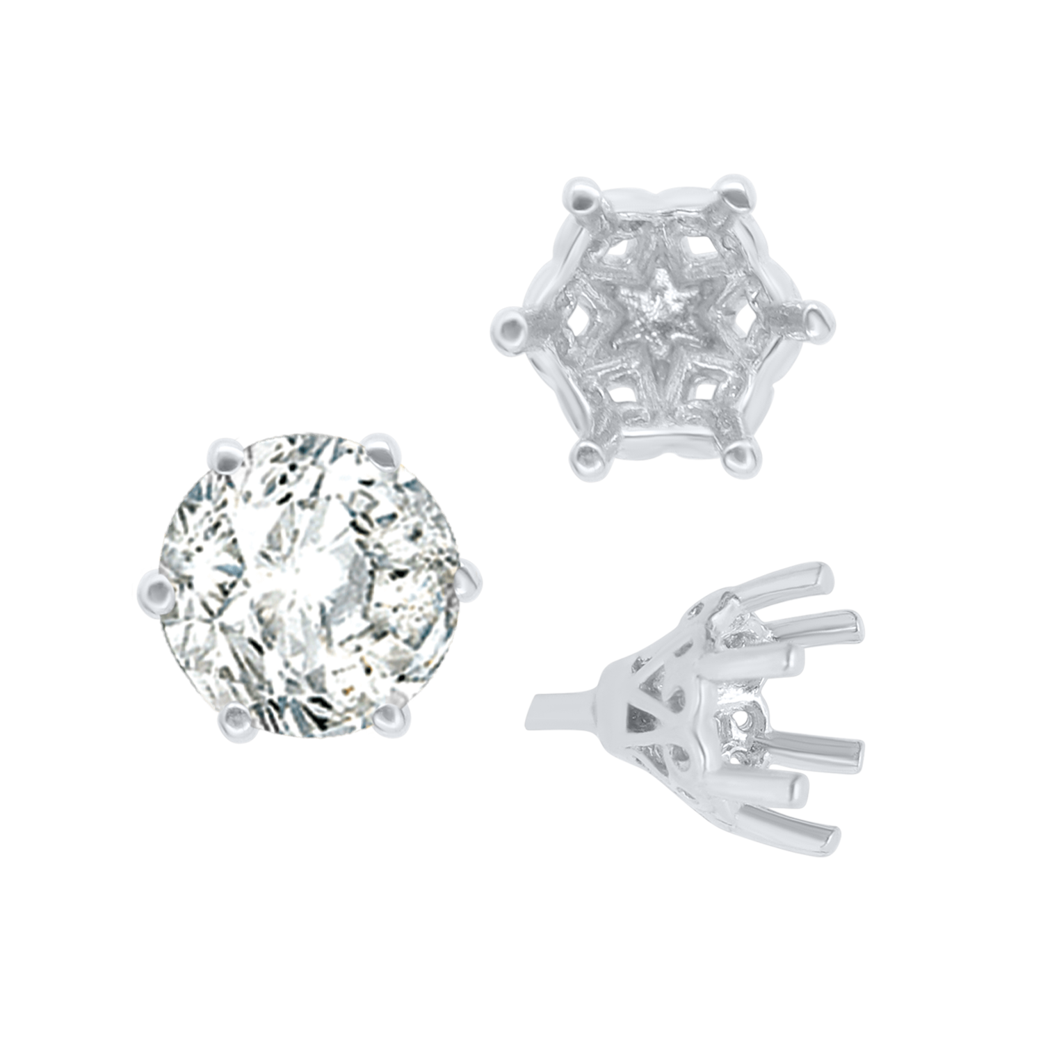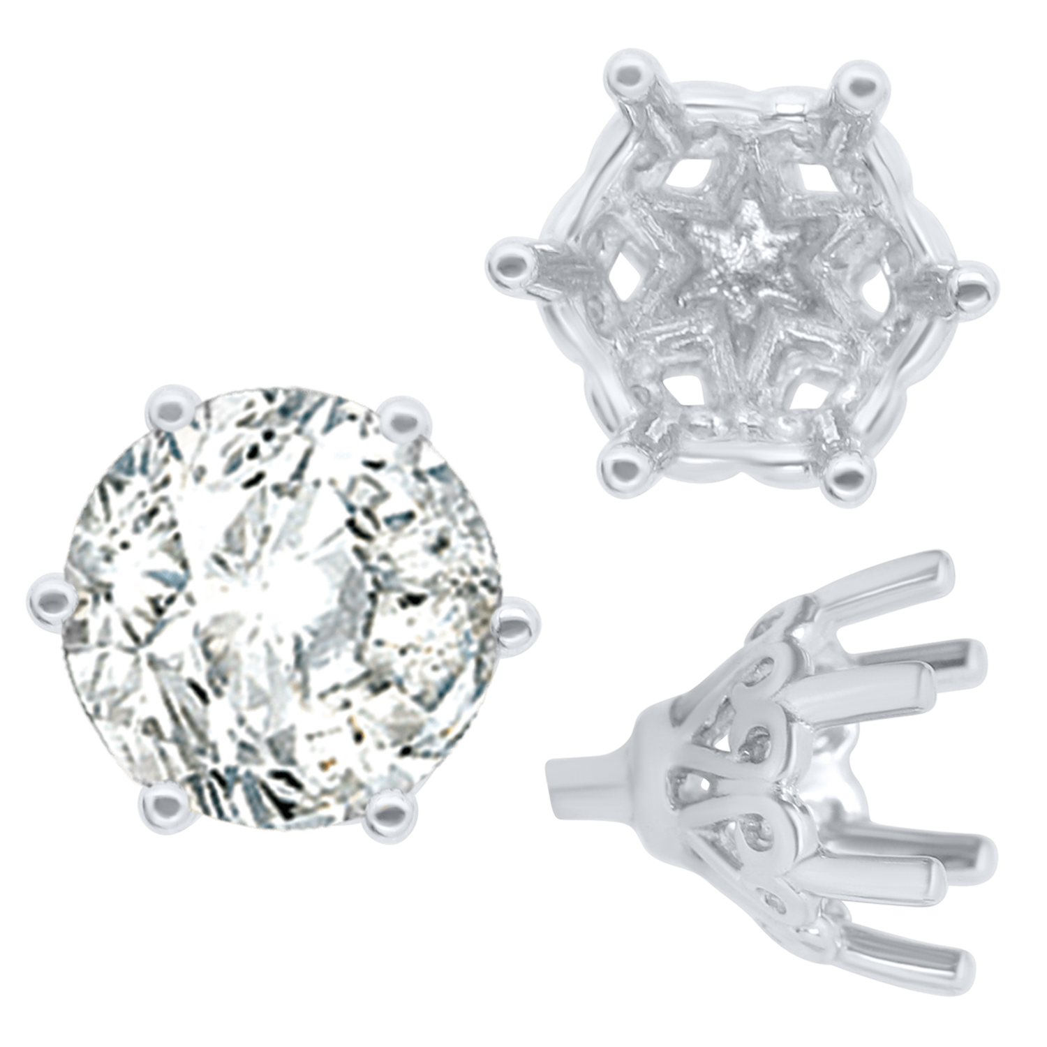 ITI NYC Six Prong Round Filigree Tapered Settings with Peg in 14K Gold (4.00 mm - 9.25 mm)