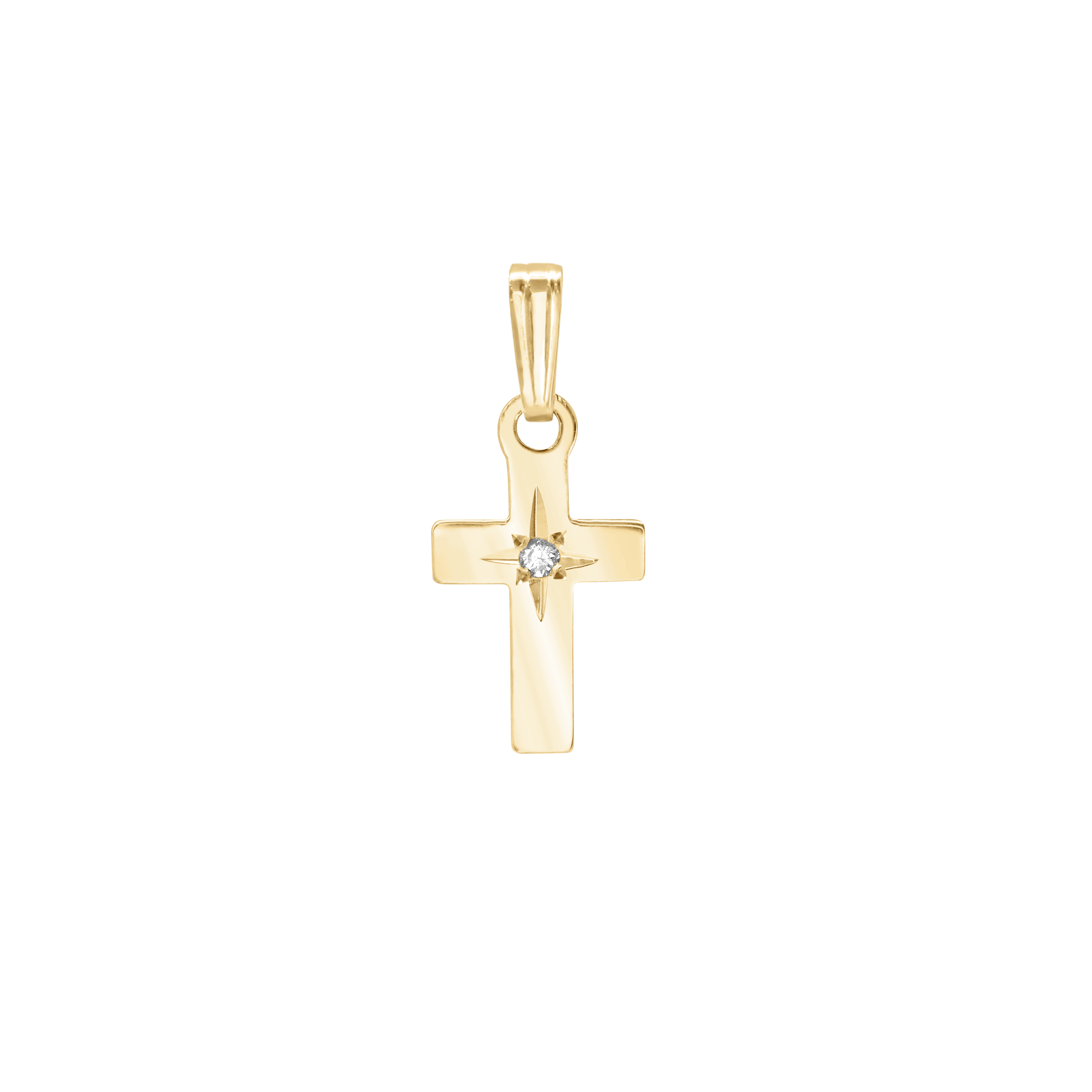 14K Gold Small Cross with Diamond (15 x 7 mm)