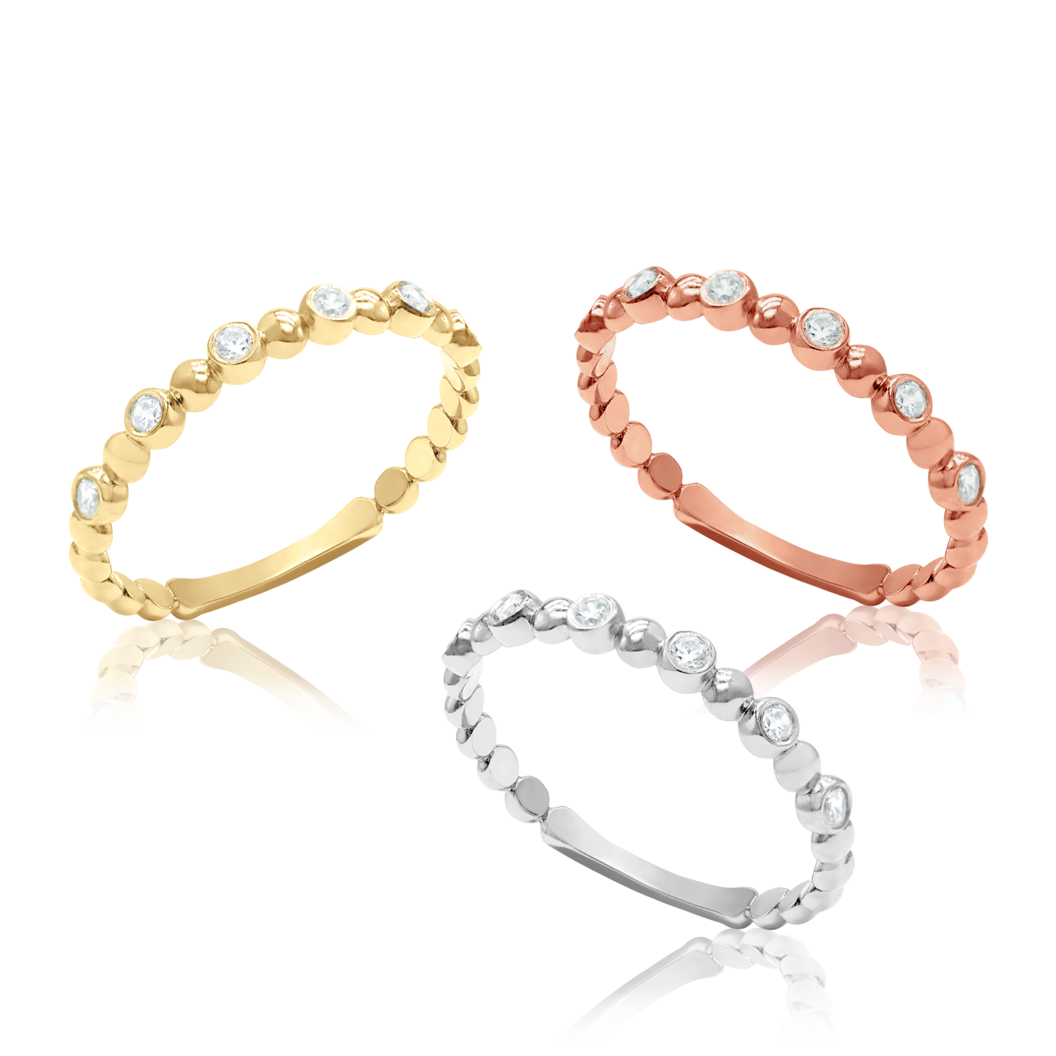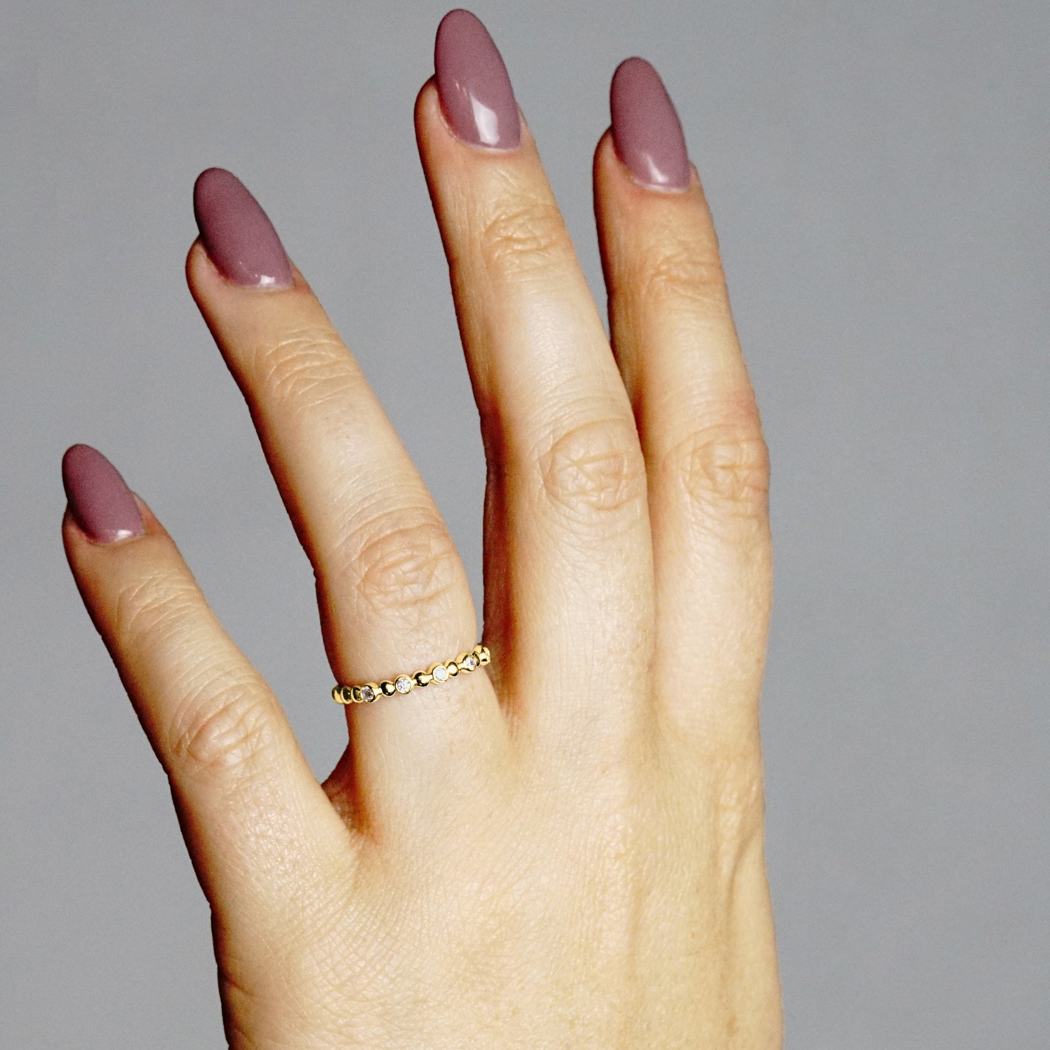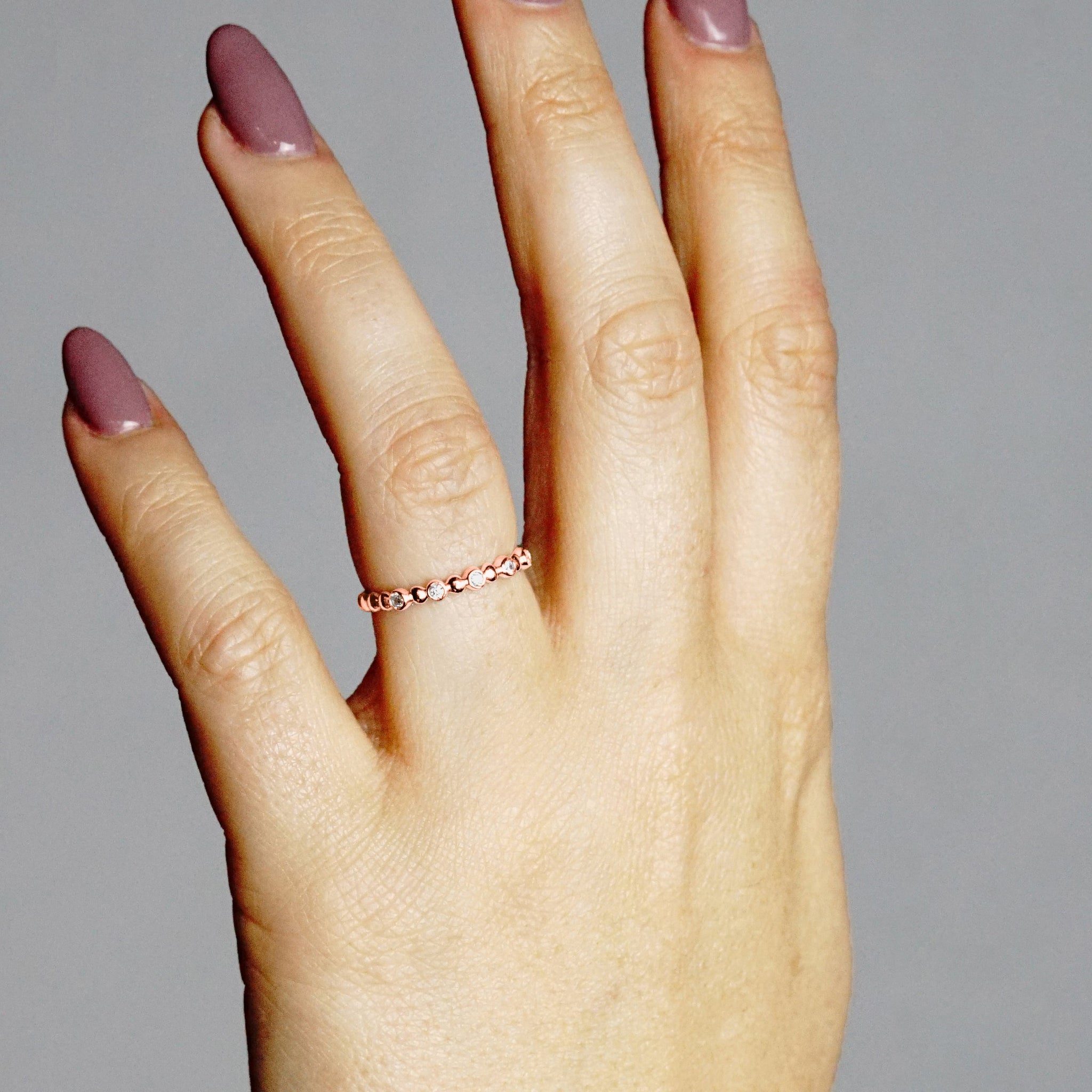This stackable has been delicately handcrafted and polished to perfection. When produced in 100% 585 14K Gold, we hand set all 0.12 ct (TW) of genuine full cut quality diamonds. When produced in 100% 925 Sterling Silver, we hand set 100% genuine cubic zirconia stones. All stones are carefully hand selected for this luxurious piece. (Stone grade: Diamonds: I1-J)