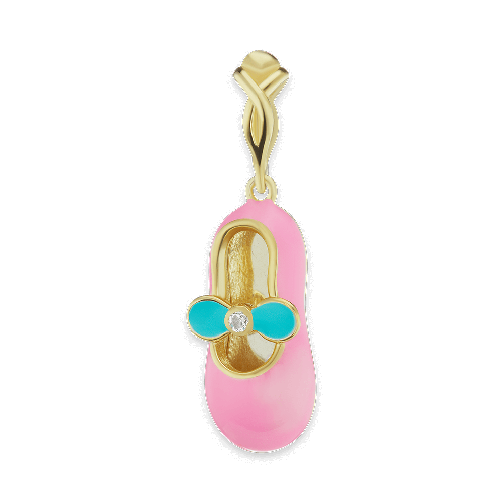 Baby Shoe Pink Ballerina with CZ Charm (28 x 10mm)