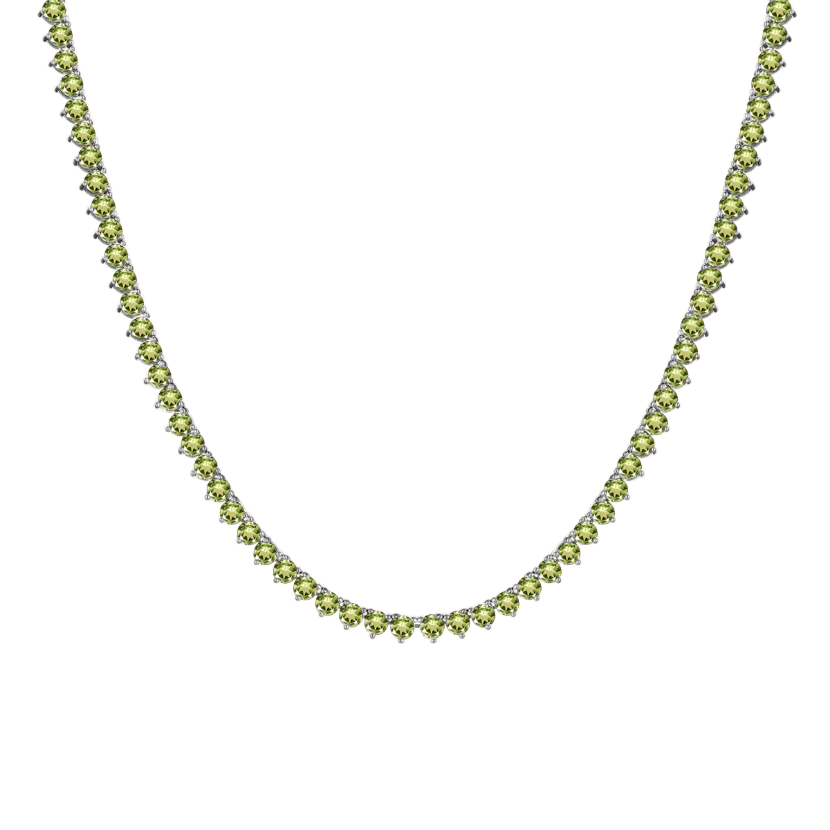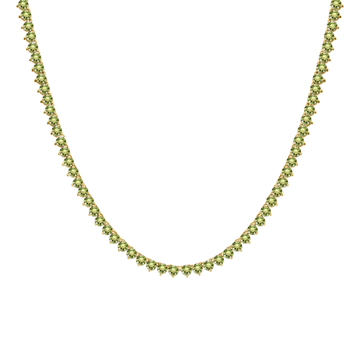 Tennis Necklace with Peridot Stones (August Birthstones) in 14K Gold (1.75 mm - 4.0 mm)