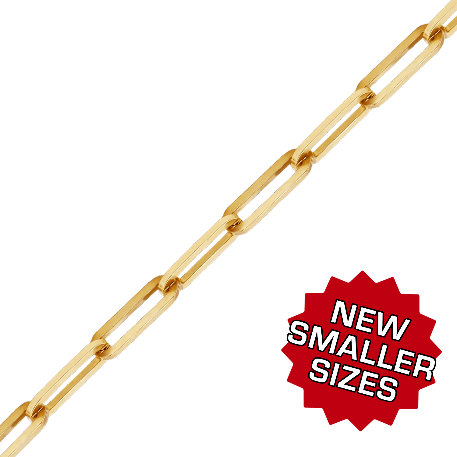 Bulk / Spooled Trace Elongated Paperclip Cable Chain in 14K & 18K Yellow Gold (1.30 mm - 7.80 mm)